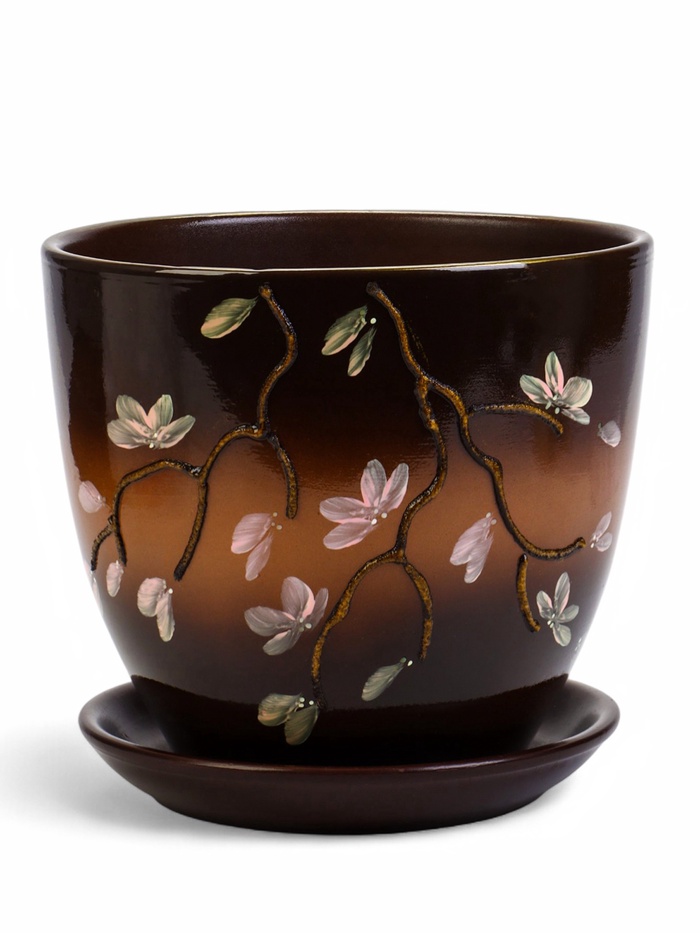 Керамический горшок «Миндаль» объёмом 5 литров – идеальный выбор для комнатных растений. Диаметр 22 см и высота 22 см обеспечивают достаточно пространства для развития корневой системы. Натуральный коричневый цвет и матовая поверхность керамики добавляют интерьеру уюта. В комплекте идёт поддон для удобного полива.