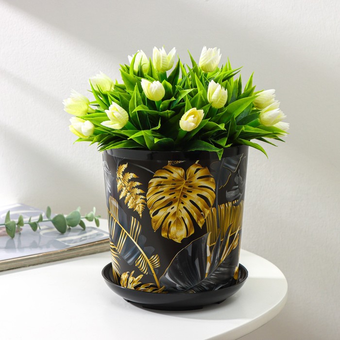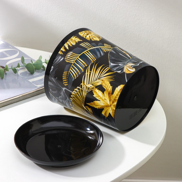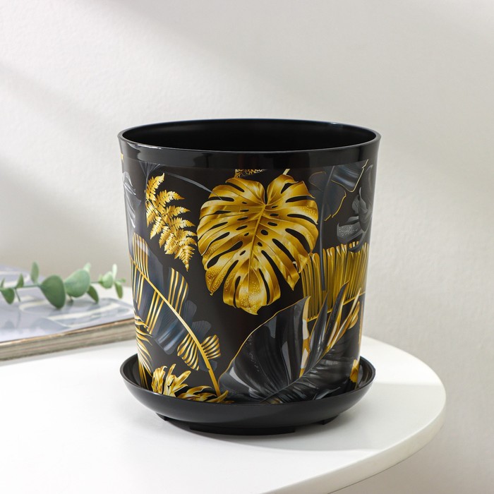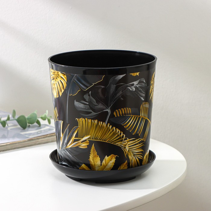 Горшок для цветов с поддоном Доляна «Голди.Тропики», 1.6 л, d=14 см, h=15.5 см, пластиковый, цвет чёрный
