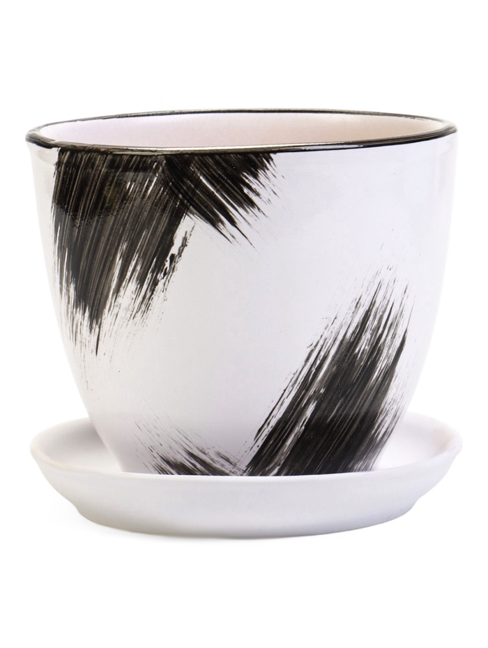 Страна: Беларусь В боксе: 10 шт Состав: Керамика Материалы: керамика Фасовка: по 1 шт Индивидуальная упаковка: Без упаковки Сертификат: Не подлежит сертификации Цвет: Белый Форма: Конусообразная Диаметр, см: 15 Высота, см: 13 Объём, л: 1 Вид установки: Настольное Материал: Керамика Можно оставлять зимой на улице: Нет Поддон в комплекте: Да Керамический горшок «Штрих» объёмом 1 литр — элегантное решение для миниатюрных растений. С диаметром 15 см и высотой 13 см идеально подходит для суккулентов, кактусов и небольших цветущих растений. Белая глянцевая поверхность с чёрным узором создаёт эффект графичности, а практичный поддон защищает поверхности от воды. Качественная керамика обеспечивает устойчивость и долговечность. Преимущества