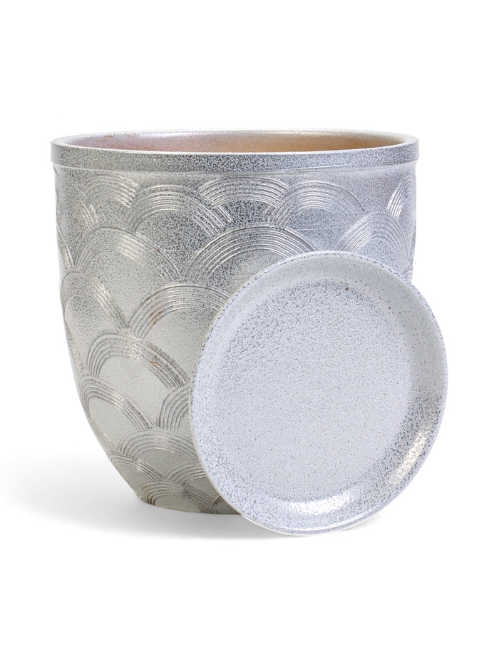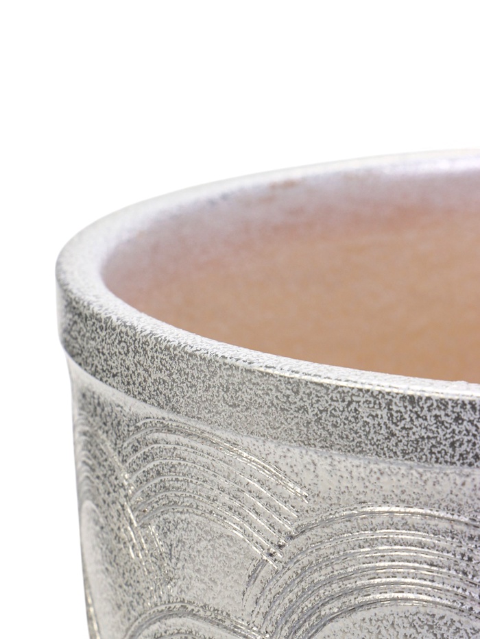 - Глянцевая поверхность с геометрическим узором. Рельефный рисунок из дуг создает интересную игру света на поверхности. Керамика обеспечивает естественный воздухообмен для корневой системы растений.