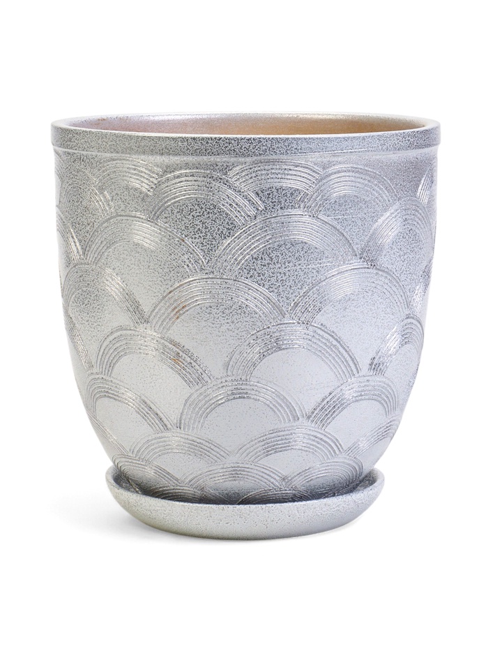 Керамический горшок «Узор» с поддоном — это гармоничное сочетание современного дизайна и практичности. Геометрический рельеф и металлический блеск создают стильный акцент в интерьере.