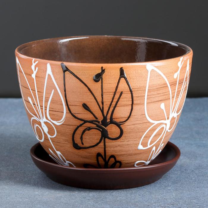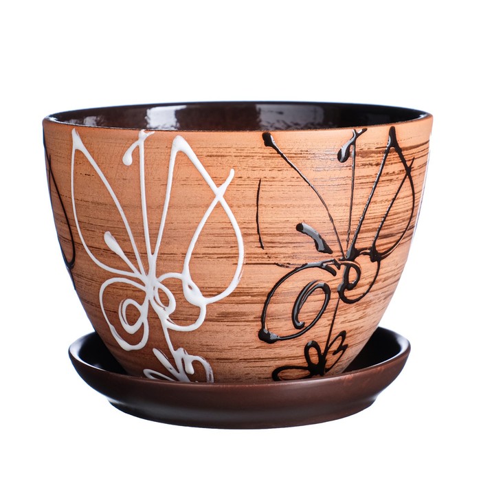 Акцент без лишних деталей: этот керамический горшок с поддоном подойдёт тем, кто ищет горшок для цветов с выразительным рисунком и сбалансированным внешним видом. Форма остаётся классической, декор — заметным, но собранным. Керамический горшок коричневого цвета объёмом 1,65 л гармонично вписывается в интерьер дома или офиса, добавляя ему характер и цельность.