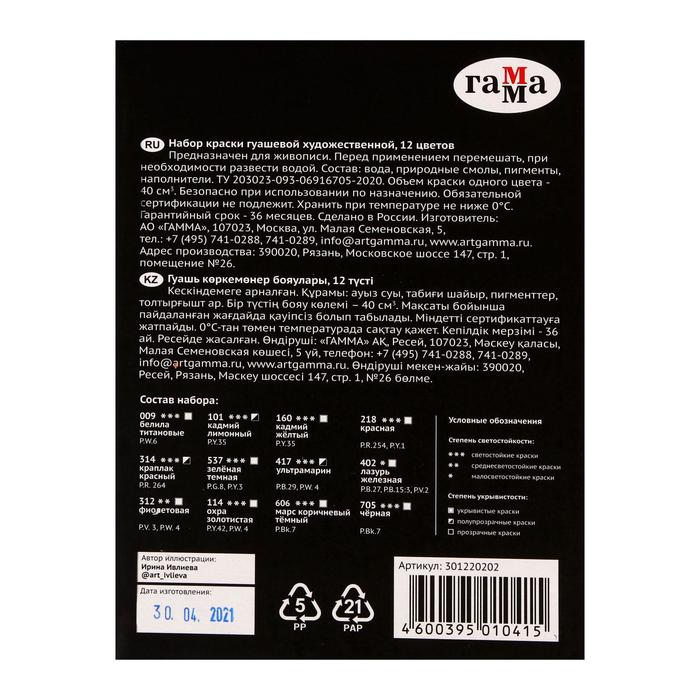 Габариты: 6 x 13 x 18 Артикул поставщика: 319198 Страна: Россия В боксе: 8 набор Состав: Гуашь Материалы: гуашь Фасовка: по 1 набор Индивидуальная упаковка: Цветная коробка Сертификат: Не подлежит сертификации Тип: Для художественных и графических работ Набор: Да Количество цветов: 12 Особенности цвета: Без особенностей Цвет: Разноцветный Европодвес: Нет Объём, мл: 40 Лицензия: Нет Вид упаковки: Коробка картонная, Пластиковая банка Штрихкод на единице товара: Да Температурное ограничение транспортировки: Нет Реестр Минпромторга: Да Гуашь художественная "Старый Мастер" - это профессиональные тонкотертые водорастворимые краски. Гуашь имеет уникальную рецептуру, разработанную в собственной исследовательской лаборатории завода совместно с художниками. Краска легко наносится на поверхность, благодаря специальным добавкам сохраняет яркость цвета после высыхания, создает плотный бархатный слой. Краска изготовлена из традиционных художественных пигментов, в том числе пигментов кадмиево-кобальтовой группы. В наборе оптимальная палитра цветов, подобранных профессиональными художниками. Набор 12 цветов, банка 40 мл. Состав набора: