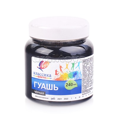 • Гуашь «Луч» предназначена для детского творчества, художественных, оформительских, рекламных, декоративно-прикладных работ. • Краска изготовлена на основе натуральных компонентов и высококачественных пигментов. • Обладает хорошей кроющей способностью и чистотой цвета. • Благодаря удобной баночке с завинчивающейся крышкой гуашь долго хранится, не высыхая. • Цвет: чёрный. • Объём краски: 240 мл. • Состав: вода питьевая, декстрин, глицерин, пигменты, наполнители, консервант. • Условия хранения: при температуре не ниже 0 градусов С. • Соответствует требованиям безопасности продукции. • Для детей старше 3-х лет.
