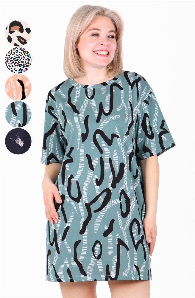 Удлиненная футболка модной леопардовой расцветки свободного покроя из легкого трикотажного полотна.
