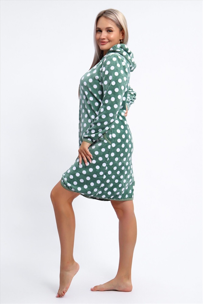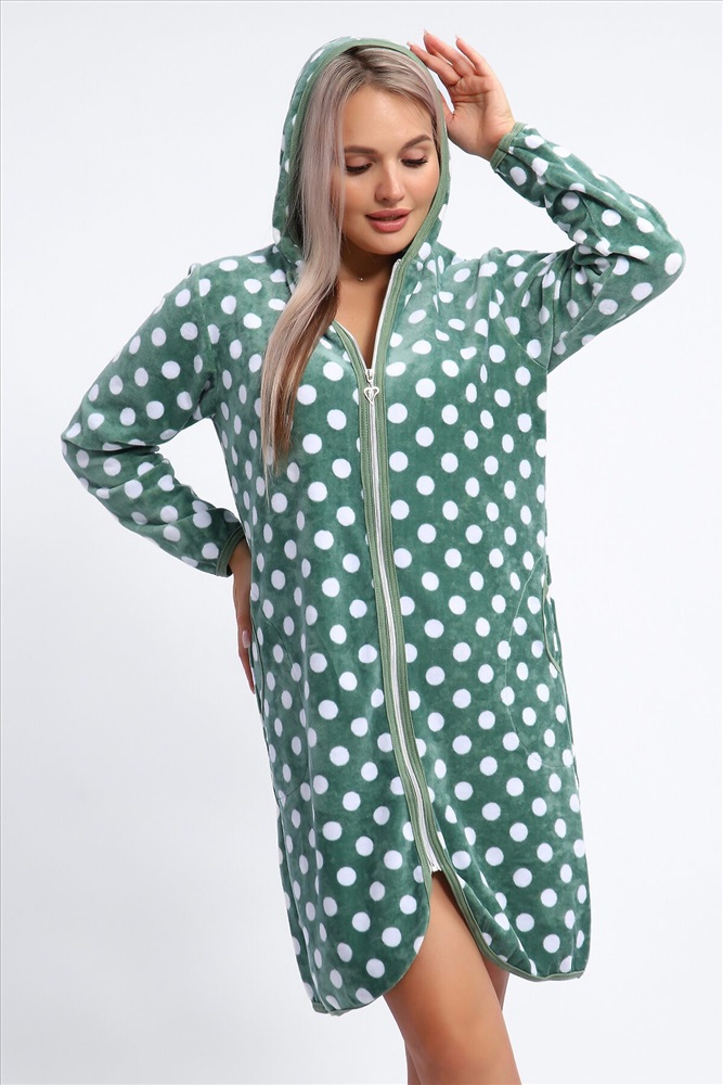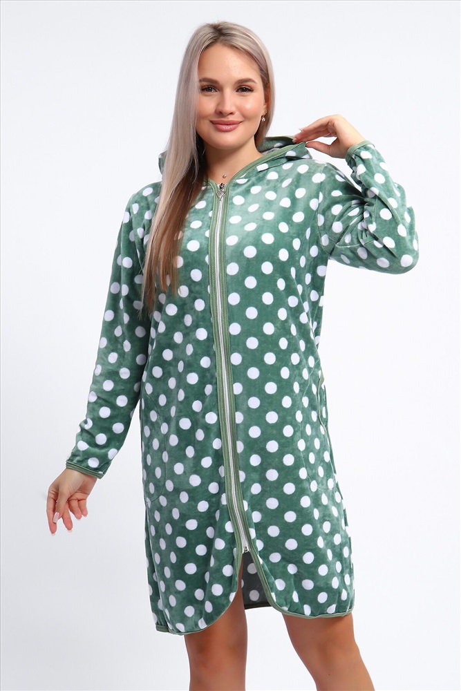 ID товара: 1207143 Состав: 80% Хлопок, 20% Полиэстер Сезон: Демисезон Длина: До колена Фасон: Прямой Рукав: Длинные Вид застежки: Молния Декоративные элементы: Принт Основная ткань: Хлопок Вид ткани: Велюр Страна бренда: Россия Страна производства: Россия Халат женский выполнен из набивного велюра на серебристой молнии с капюшоном. Халат окантован по кругу отделкой контрастного цвета, рукава длинные, низ изделия и рукавов подшиты. Халат комфортный, мягкий, уютный, идеально подойдет для дома и отдыха. Комментарии к товару