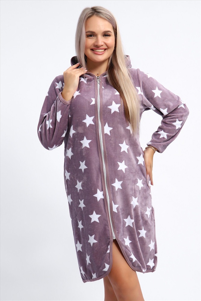 ID товара: 1207144 Состав: 80% Хлопок, 20% Полиэстер Сезон: Демисезон Длина: До колена Фасон: Прямой Рукав: Длинные Вид застежки: Молния Основная ткань: Хлопок Вид ткани: Велюр Страна бренда: Россия Страна производства: Россия Халат женский выполнен из набивного велюра на серебристой молнии с капюшоном. Халат окантован по кругу отделкой контрастного цвета, рукава длинные, низ изделия и рукавов подшиты. Халат комфортный, мягкий, уютный, идеально подойдет для дома и отдыха. Комментарии к товару