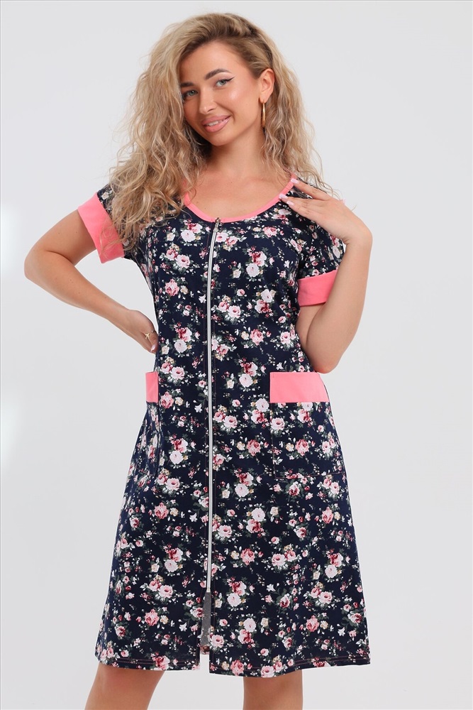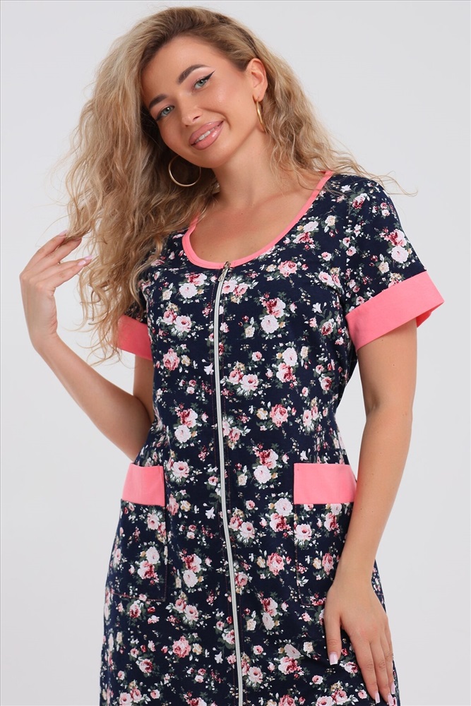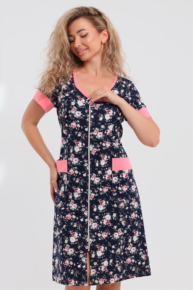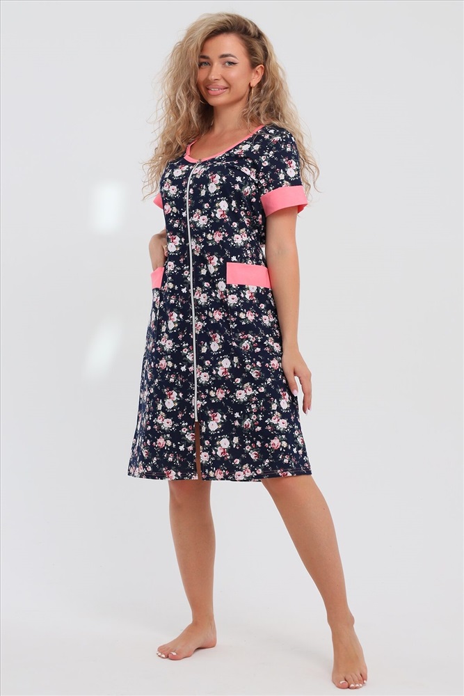 ID товара: 1182338 Состав: 100% Хлопок Сезон: Демисезон Длина: До колена Фасон: Полуприлегающий Рукав: короткие Вид застежки: Молния Декоративные элементы: Принт Основная ткань: Хлопок Вид ткани: Кулирка Страна бренда: Россия Страна производства: Россия Женский халатик на молнии самая распространенная и универсальная одежда для домашнего отдыха и хозяйственных хлопот. После трудного рабочего дня, приходя домой, первым делом хочется переодеться. И данная модель это идеальный вариант среди представительниц прекрасной половины человечества. Модель выполнена из 100% хлопчатобумажной ткани. Халат так же дополняет яркая отделка по рукавам и карманам. А пояс на линии талии поможет легко смоделировать женственный силуэт и при этом Вы будете чувствовать себя легко и непринуждённо. Данная модель прекрасно подойдёт для дома, дачи и отдыха, создавая по-настоящему яркий образ и хорошее настроение! Рост модели на фото 165см. Комментарии к товару