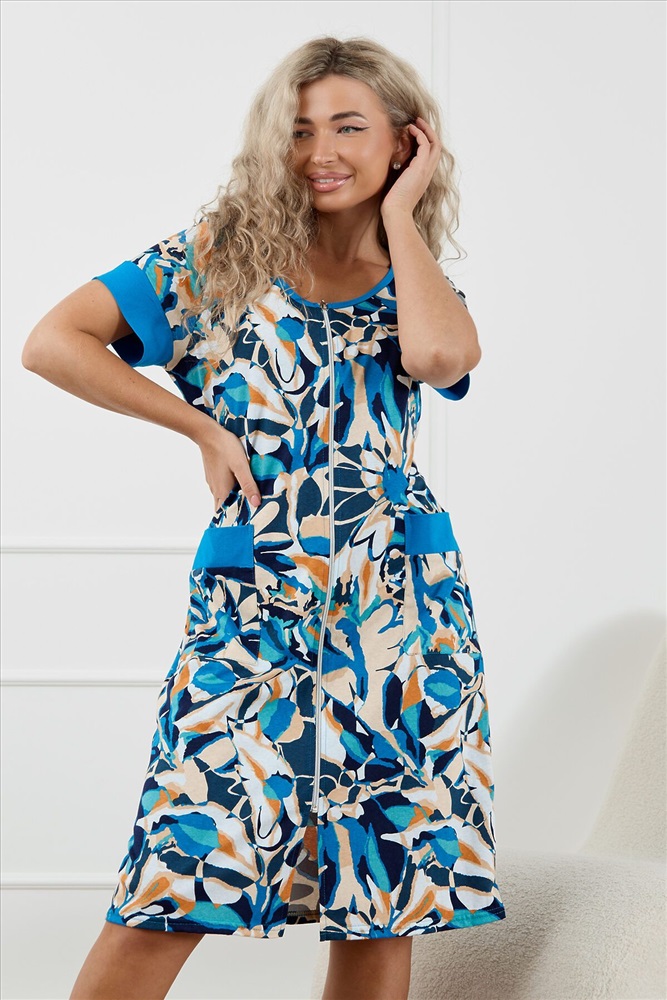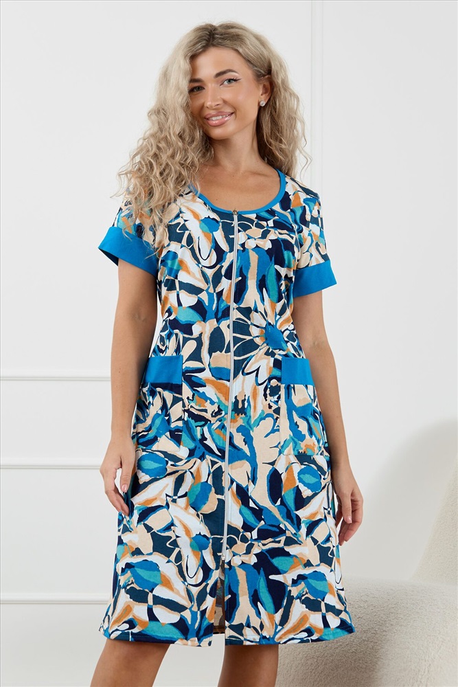 ID товара: 1210412 Состав: 100% Хлопок Сезон: Демисезон Длина: прикрывает колено Фасон: А-силуэт Рукав: короткие Вид застежки: Молния Декоративные элементы: Принт Основная ткань: Хлопок Вид ткани: Кулирка Страна бренда: Россия Страна производства: Россия Женский халатик на молнии самая распространенная и универсальная одежда для домашнего отдыха и хозяйственных хлопот. После трудного рабочего дня, приходя домой, первым делом хочется переодеться. И данная модель это идеальный вариант среди представительниц прекрасной половины человечества. Модель выполнена из 100% хлопчатобумажной ткани. Халат так же дополняет яркая отделка по рукавам и карманам. А пояс на линии талии поможет легко смоделировать женственный силуэт и при этом Вы будете чувствовать себя легко и непринуждённо. Данная модель прекрасно подойдёт для дома, дачи и отдыха, создавая по-настоящему яркий образ и хорошее настроение! Рост модели на фото 165см. Комментарии к товару