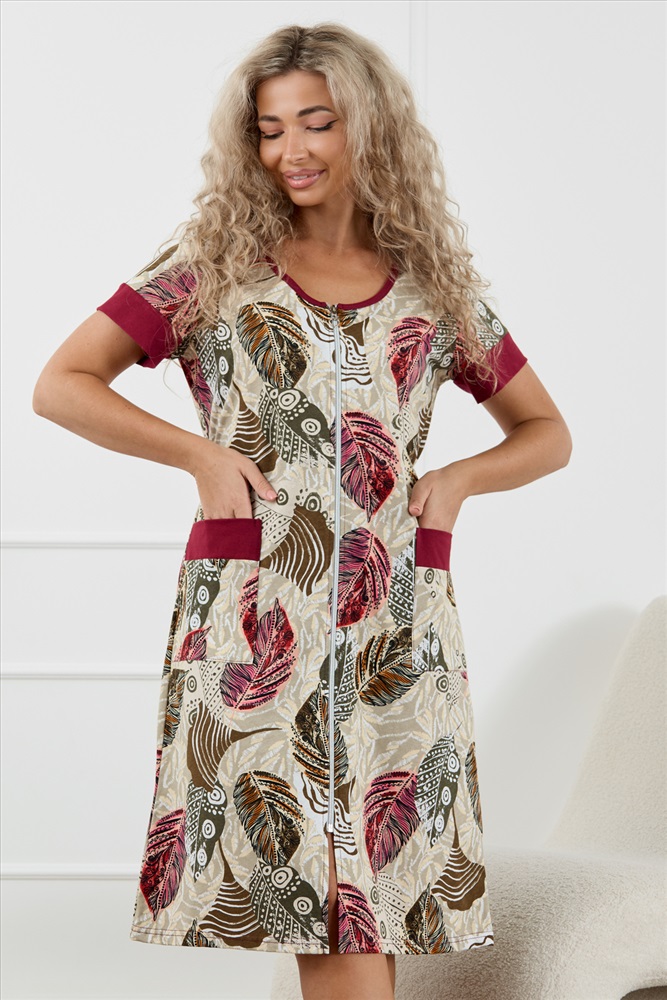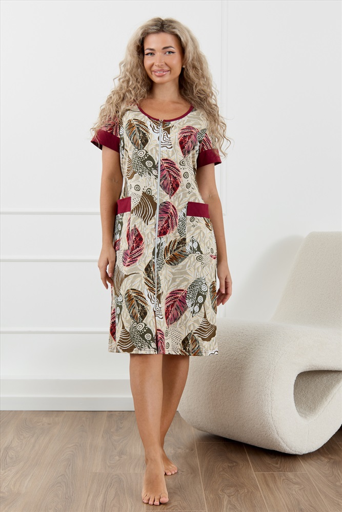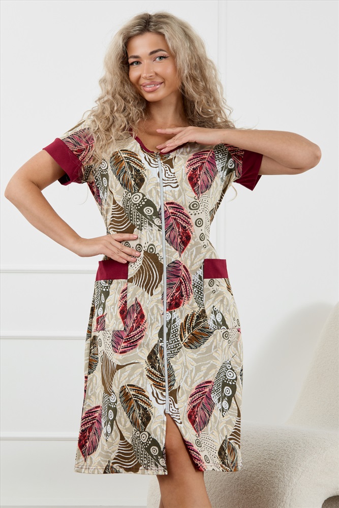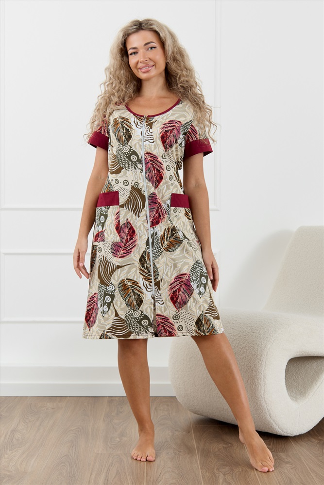 Женский халатик на молнии самая распространенная и универсальная одежда для домашнего отдыха и хозяйственных хлопот. После трудного рабочего дня, приходя домой, первым делом хочется переодеться. И данная модель это идеальный вариант среди представительниц прекрасной половины человечества. Модель выполнена из 100% хлопчатобумажной ткани. Халат так же дополняет яркая отделка по рукавам и карманам. А пояс на линии талии поможет легко смоделировать женственный силуэт и при этом Вы будете чувствовать себя легко и непринуждённо. Данная модель прекрасно подойдёт для дома, дачи и отдыха, создавая по-настоящему яркий образ и хорошее настроение! Рост модели на фото 165см.