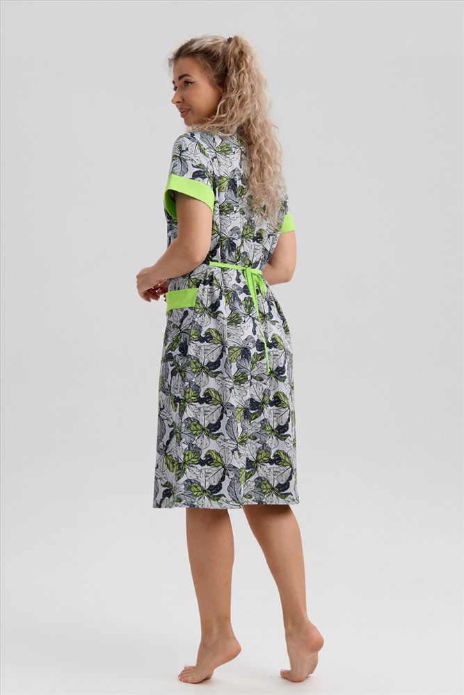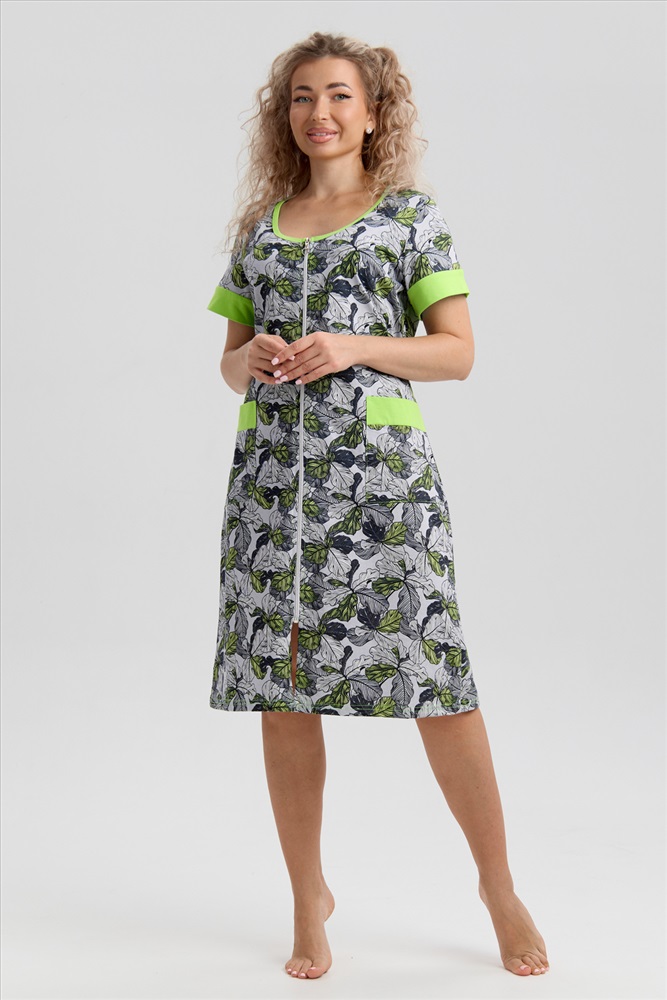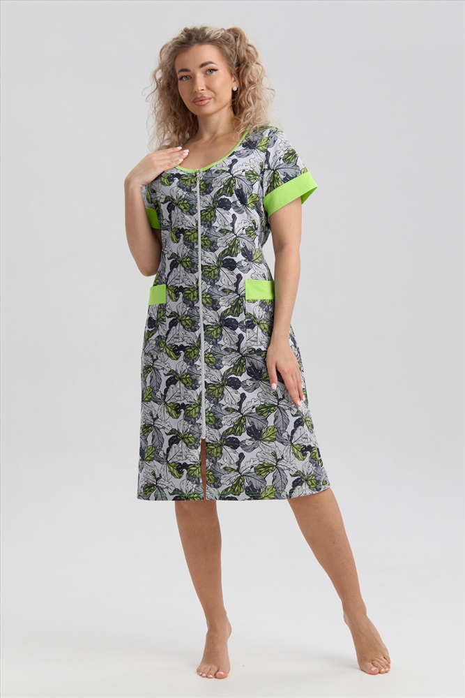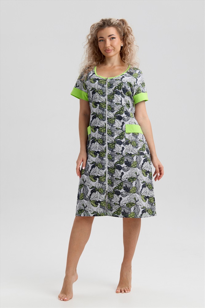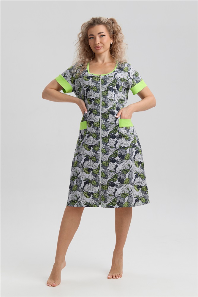 Состав: 100% хлопок Модель: Халат 36980 Тип товара: халат Материал: кулирка | кулирка Бренд: Натали Суслова Карман: накладные Назначение: для дома Отделка: с карманами | с поясом Рисунок: цветы Рукав: короткий рукав Сезонность: лето | осень | весна | зима Силуэт: свободный Стиль: домашний Воротник: без воротника Застежка: молния Женский халатик на молнии самая распространенная и универсальная одежда для домашнего отдыха и хозяйственных хлопот. После трудного рабочего дня, приходя домой, первым делом хочется переодеться. И данная модель это идеальный вариант среди представительниц прекрасной половины человечества. Модель выполнена из 100% хлопчатобумажной ткани. Халат так же дополняет яркая отделка по рукавам и карманам. А пояс на линии талии поможет легко смоделировать женственный силуэт и при этом Вы будете чувствовать себя легко и непринуждённо. Данная модель прекрасно подойдёт для дома, дачи и отдыха, создавая по-настоящему яркий образ и хорошее настроение! Рост модели на фото 165см. Таблица размеров и веса