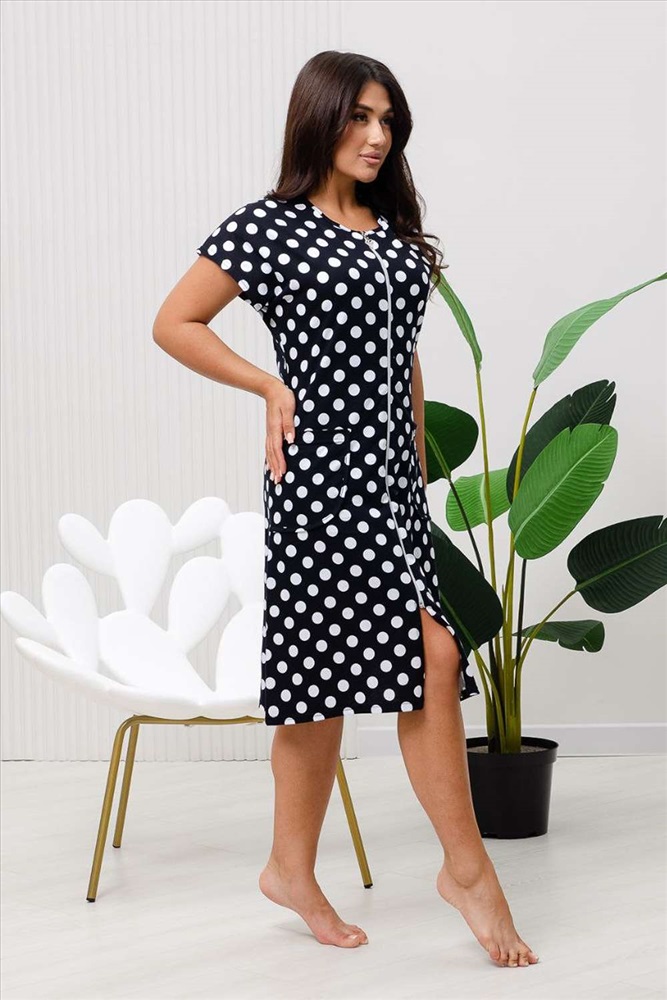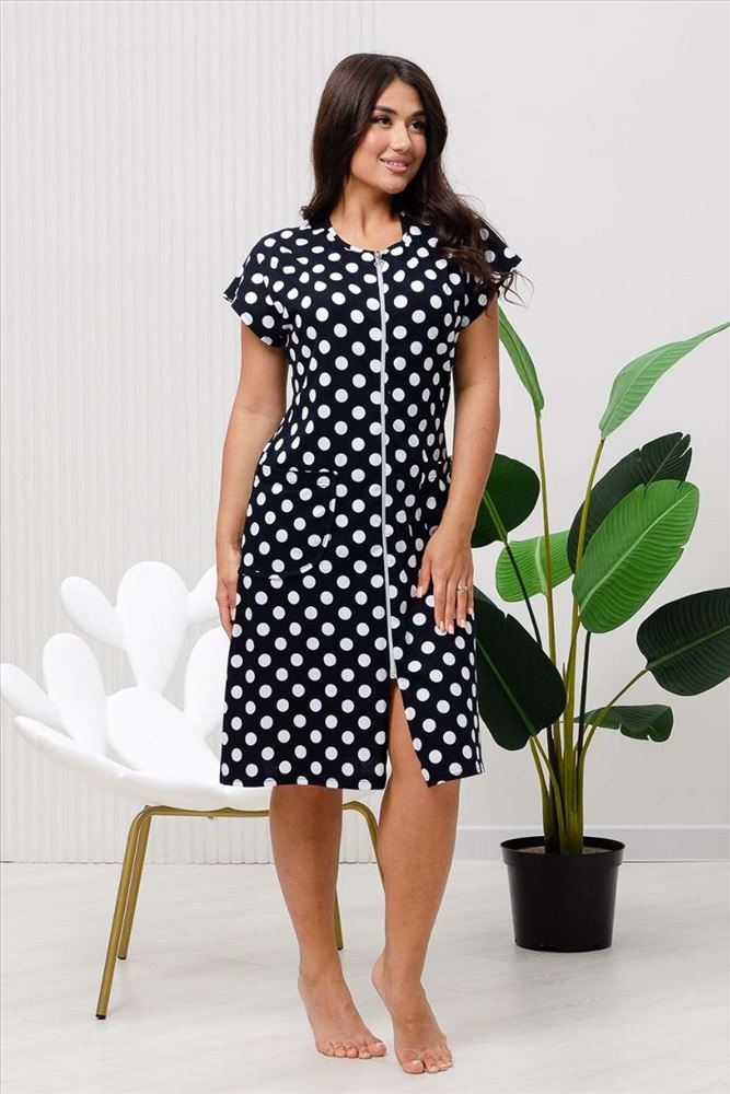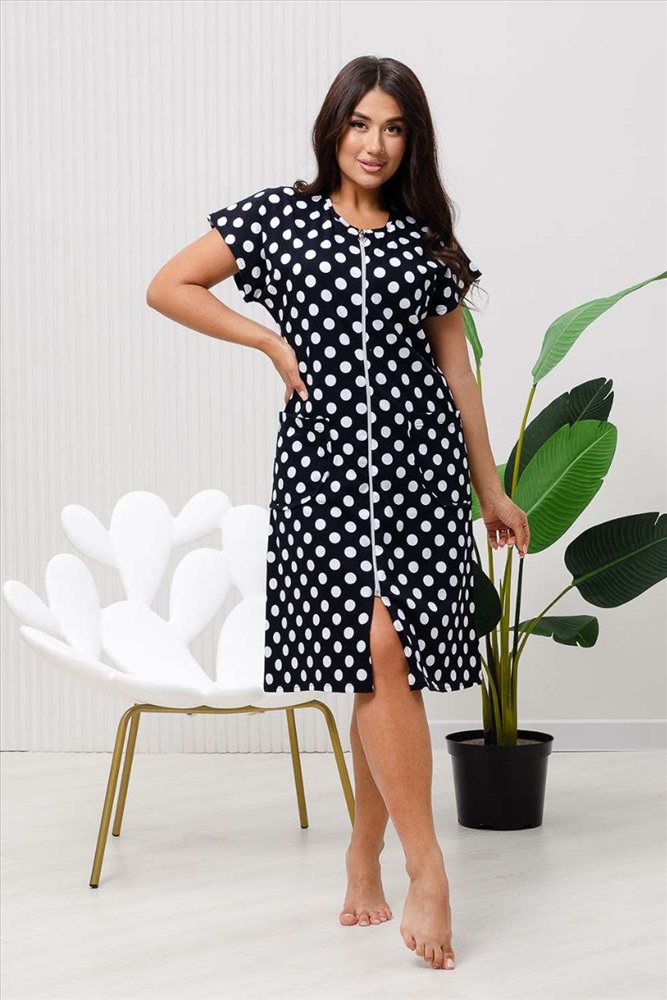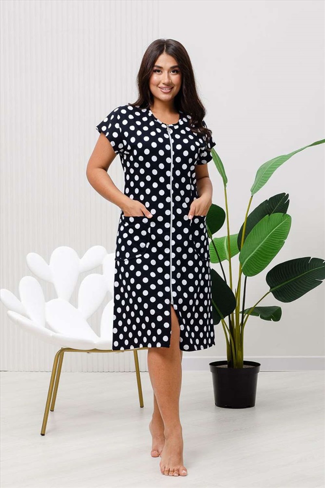 Состав: 100% хлопок Модель: Халат 83610 Тип товара: халат Материал: кулирка | кулирка Бренд: Натали Суслова Карман: накладные Назначение: для дома Отделка: с карманами Рисунок: горошек Рукав: короткий рукав Сезонность: лето | осень | весна | зима Силуэт: полуприлегающий | прямой Скидка: любая | от 10% и больше | от 30% и больше Стиль: домашний Воротник: без воротника Застежка: молния Халат женский на молнии оригинальной яркой расцветки Горох выполнен из кулирки 100% хлопок. Халат со спущенным рукавом, карман закругленной формы. Рукав подшит, горловина и карман окантованы узким кантом из основной ткани. Халат идеально подойдет для повседневной носки и отдыха. Таблица размеров и веса