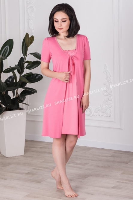 90% вискозы, 10% лайкры Тип ткани: Вискоза Лаконичный халат без лишних деталей, сочного розового оттенка. Качественная вискоза подарит приятные тактильные ощущения, а простота кроя не сковывает движения. Изделие фиксируется на верхние завязки. Идеальный компаньон к данному халату сорочка Арт.0011-07.
