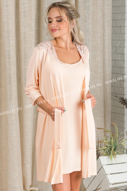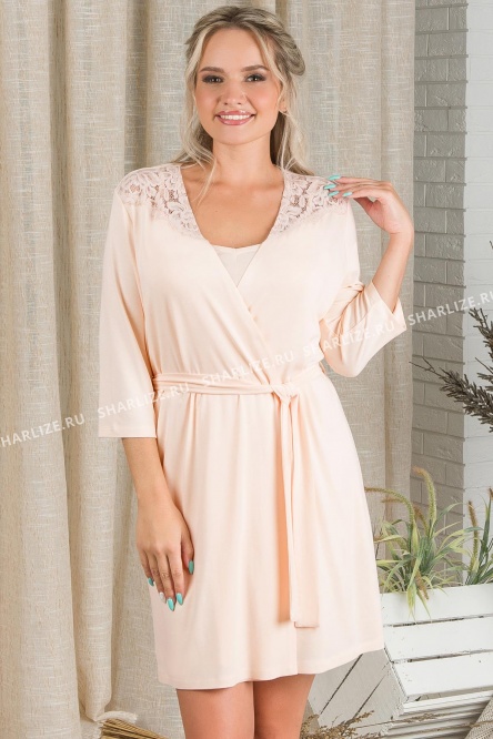 Легкий и приятный к телу халат из вискозы длиной выше колен.