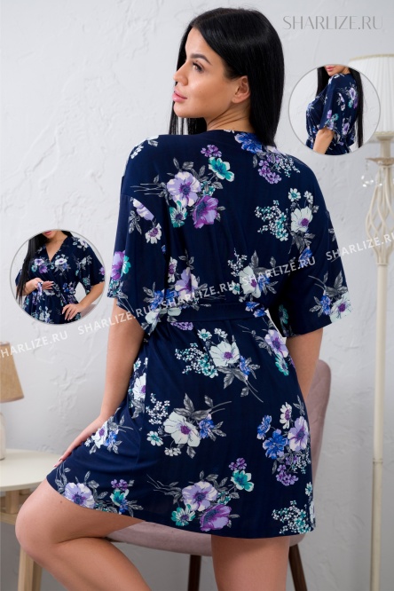 Практичный и комфортный халат станет еще одной универсальной вещью вашего гардероба, которую можно комбинировать с любимыми сорочками и костюмами для сна "Шарлиз" в классических синих оттенках.