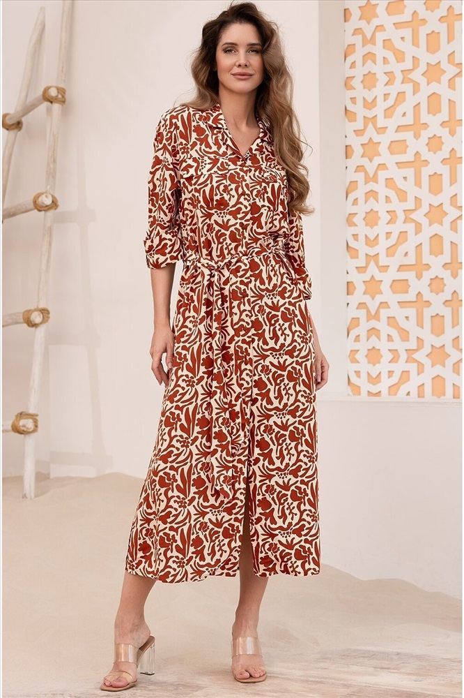 Производитель: MIA AMORE ID товара: 1186937 Состав: 100% Вискоза Сезон: Весна/Лето Длина: Миди Фасон: Полуприлегающий Рукав: 3/4 Вид застежки: Пуговицы Вырез горловины: Отложной воротничок Рисунок: Узор Тип карманов: В шве Декоративные элементы: Пояс Основная ткань: Вискоза Стиль: Повседневный Страна бренда: Италия Страна производства: Китай