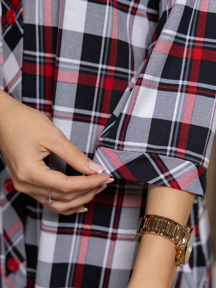 Женский халат из 100% хлопка, длиной до колена, с отложным воротником и застежкой на пуговицы, ультрасовременный материал со стильным рисунком, придают данной модели особую роскошь. Удобный втачной рукав, длиной 3/4 подарит свободу в движении, в боковых швах удобные и вместительные карманы.