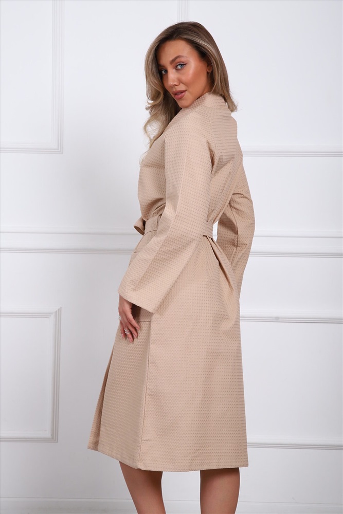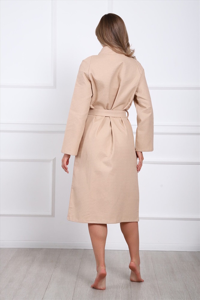 ID товара: 1135063 Состав: Хлопок 100% Сезон: Демисезон Длина: Удлиненная Фасон: Полуприлегающий Рукав: Длинные Декоративные элементы: Пояс Основная ткань: Хлопок Вид ткани: Вафельное полотно Страна бренда: Россия Страна производства: Россия Халат женский вафельный выполнен из 100% хлопка. Плотность вафельного полотна - 240 гр/м2. Эта прочная плотная ткань обладает особой мягкостью благодаря своей структуре. Приятная к телу ткань быстро впитывает влагу, хорошо пропускает воздух, не оставляет лишних ворсинок и волосков на теле, не электризуется и не прилипает к телу. Впитывающие свойства ткани позволяют использовать вафельный халат как полотенце после душа или бани. Усадка после стирки не превышает 5% при соблюдении рекомендаций по уходу (бережная стирка при температуре не более 30 градусов, отжим в режиме не более 1000 оборотов, естественная сушка в расправленном виде). Халат не полиняет и надолго сохранит свой внешний вид. Модель халата: кимоно с воротником типа планка, длинными рукавами, накладными карманами, поясом. Фасон кимоно имеет свободный крой, отсутствуют какие-либо застежки, широкие рукава. Халат идеально сядет на любую женскую фигуру. Предназначение халата: для дома, бани, сауны, бассейна, spa-процедур. Товар сертифицирован и соответствует высоким стандартам качества товаров, соприкасаемых с телом. Комментарии к товару