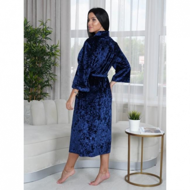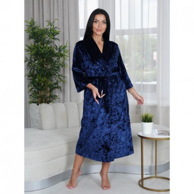 Мраморный бархат - изысканная фасонная ткань с эффектным расположением мягкого ворса, который на отдельных участках слегка приглажен. Бархатистая поверхность ткани с переливами, создаёт эффект живой и необычной ткани. Универсальная и самая распространенная модель — халат с запахом. Этот покрой позволяет корректировать одежду точно по фигуре: изделие не придется менять на другое при изменениях веса, а косая форма декольте визуально сделает шею длиннее.