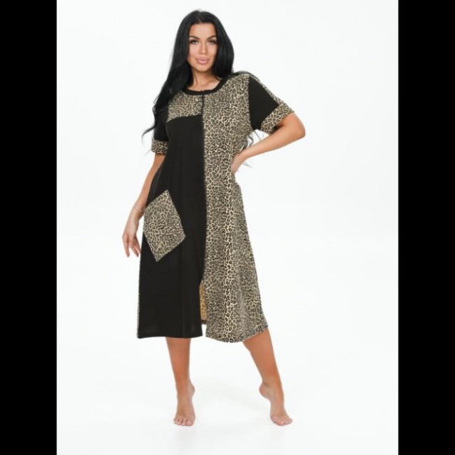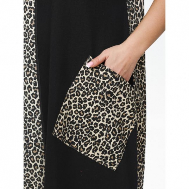Необычное композиционное решение деталей, а также сочетание актуальной расцветки ткани создает запоминающийся образ. Длина и трапециевидный силуэт халата позволяют носить эту модель девушкам и женщинам с абсолютно любой фигурой. Эта модель с центральной застежкой-молнией, с большим карманом, на который настрачивается декоративная лента, станет неотъемлемой частью вашего гардероба.