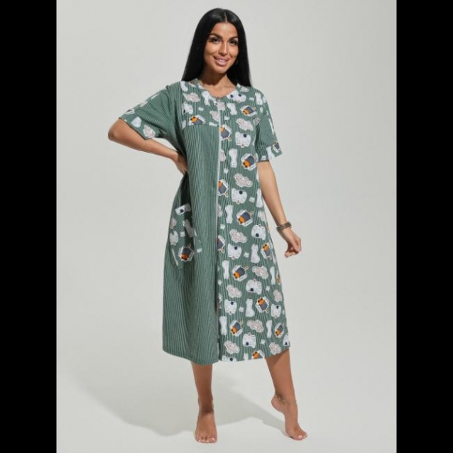 Необычное композиционное решение деталей, а также сочетание актуальной расцветки ткани создает запоминающийся образ. Длина и трапециевидный силуэт халата позволяют носить эту модель девушкам и женщинам с абсолютно любой фигурой. Эта модель с центральной застежкой-молнией, с большим карманом, на который настрачивается декоративная лента, станет неотъемлемой частью вашего гардероба. Комментарии к товару