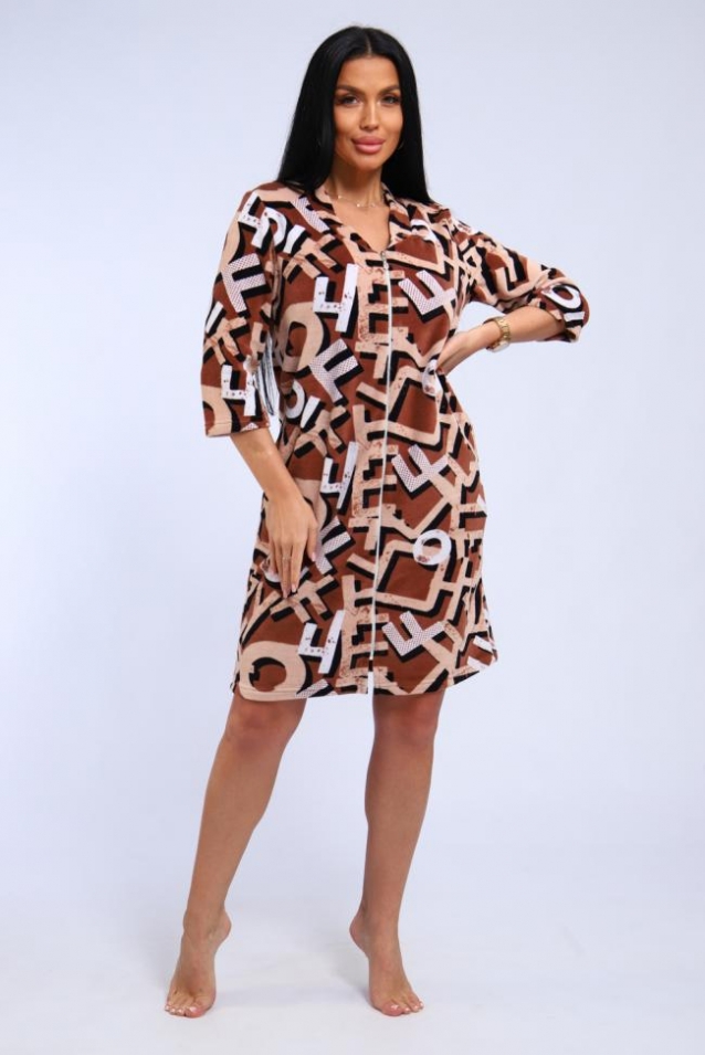 Халат женский теплый велюровый на молнии с карманами.