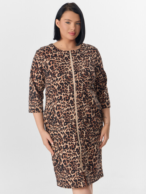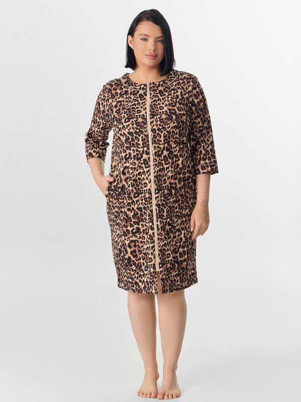 Универсальный бежевый оттенок в сочетании с леопардовым принтом создает элегантный образ, а свободный крой подойдет для разных ситуаций. Это прекрасный вариант для повседневной носки дома, отдыха или специальных случаев, дарящий чувство уюта и заботы о себе.