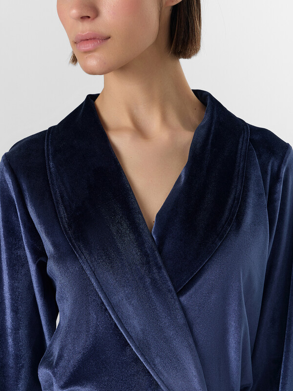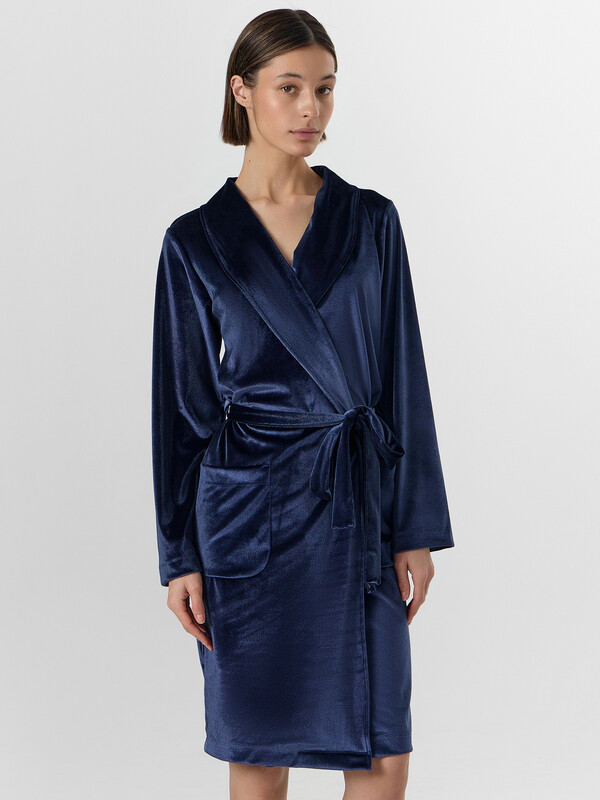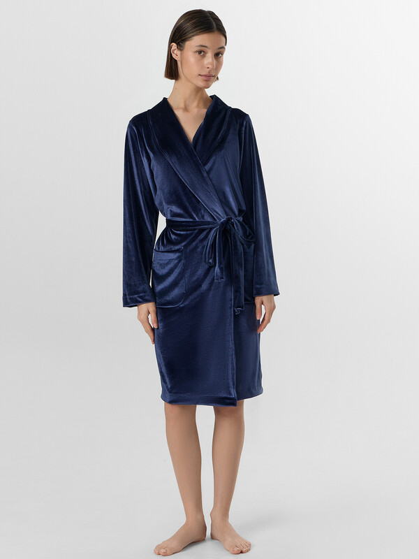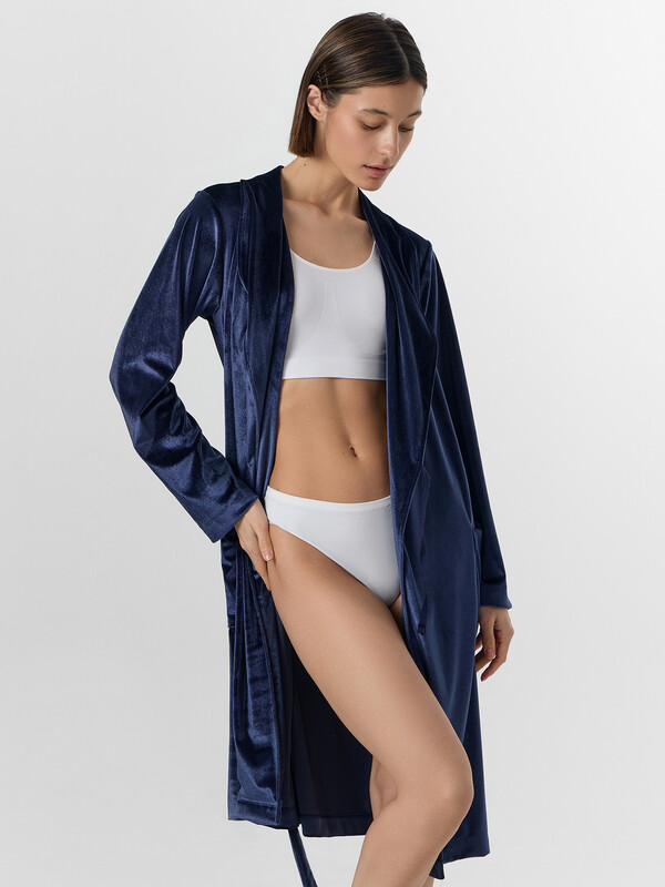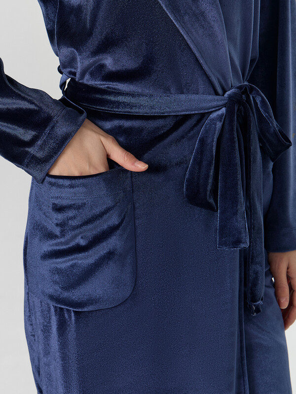 Бархатистый велюр с добавлением эластана мягко облегает фигуру, сохраняя тепло и даря невероятные тактильные ощущения. В этом халате так приятно пить утренний кофе, читать книгу вечером или встречать близких — вы всегда будете выглядеть собранной и элегантной даже в моменты отдыха.
