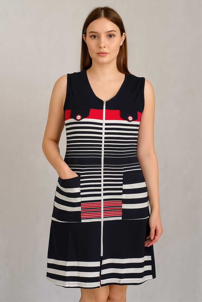 Состав: 100% хлопок Модель: Халат женский без рукавов на молнии 303 Тип товара: халат Материал: интерлок | интерлок Бренд: NINEL Карман: накладные Назначение: для дома Отделка: с карманами Рисунок: колорблок | полоска Рукав: без рукава Сезонность: лето | осень | весна | зима Силуэт: полуприлегающий | свободный Стиль: домашний Воротник: без воротника Застежка: молния Халат женский без рукавов на молнии. Два накладных кармана по бокам, свободный крой без пояса. Декоративные пуговицы спереди. Модель выполнена из 100% хлопка. Таблица размеров и веса