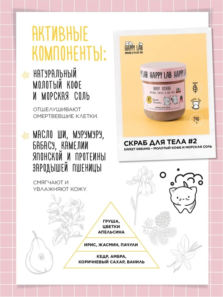 Подарите себе или близким наслаждение с увлажняющим подарочным набором Happy Lab «Sweet Dreams»! В набор входит ароматный гель для душа и отшелушивающий кофейный скраб, которые вместе создают идеальный уход за кожей тела.