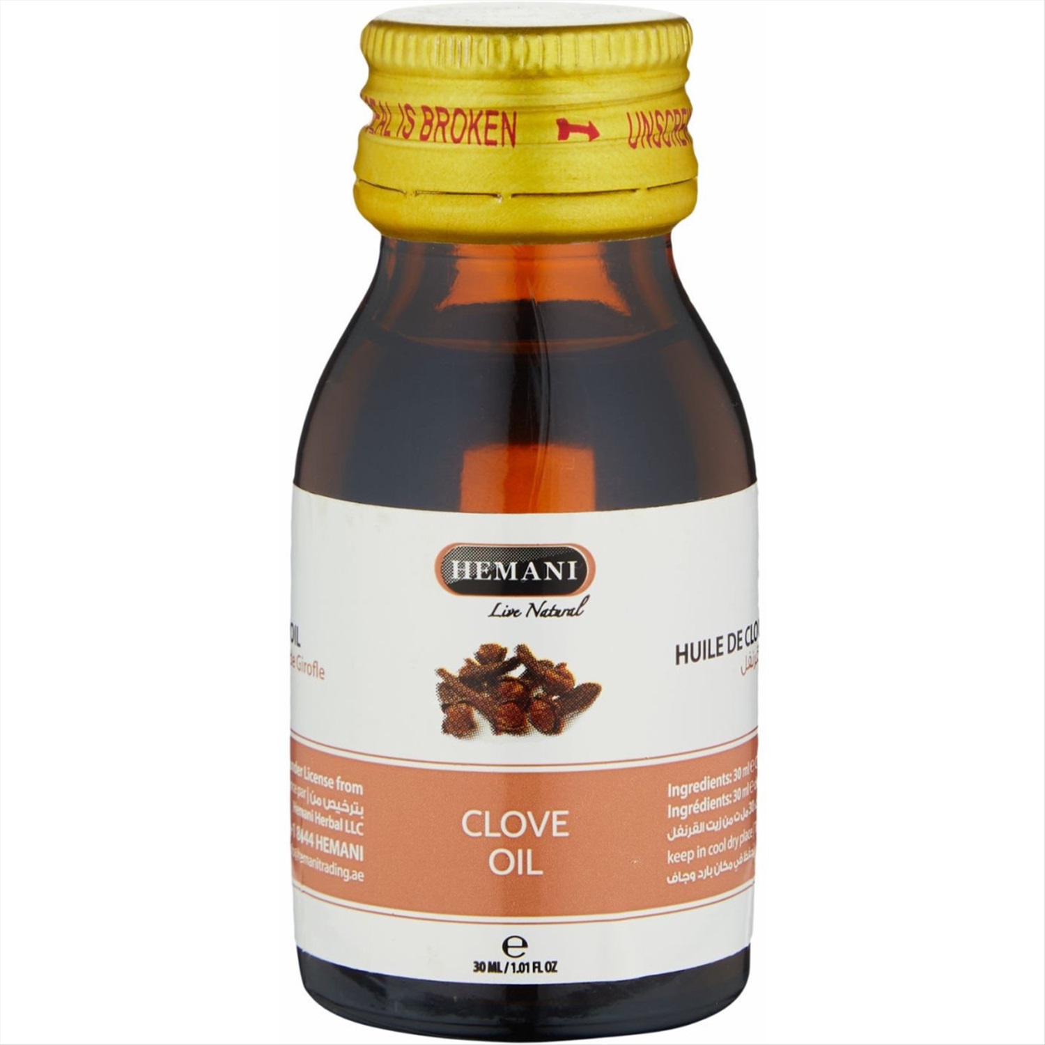 Масло гвоздики Hemani Clove Oil — косметическое средство, в состав которого входит 100% натуральное масло гвоздики. Масло обладает антисептическими, противовоспалительными, болеутоляющим, тонизирующим и согревающим эффектом. Имеет лёгкую консистенцию и терпкий аромат.