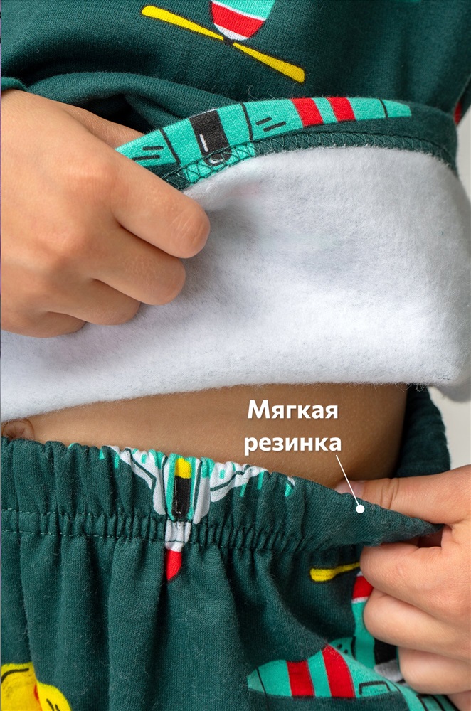 Домашняя пижама выполнена из трикотажной ткани футер, которая идеальна для зимы. Начес отлично сохраняет тепло. Пижама для детей не боится частых стирок и надолго сохраняет первоначальный внешний вид.