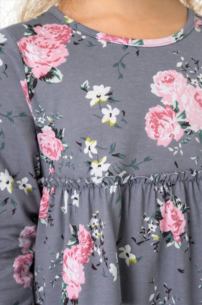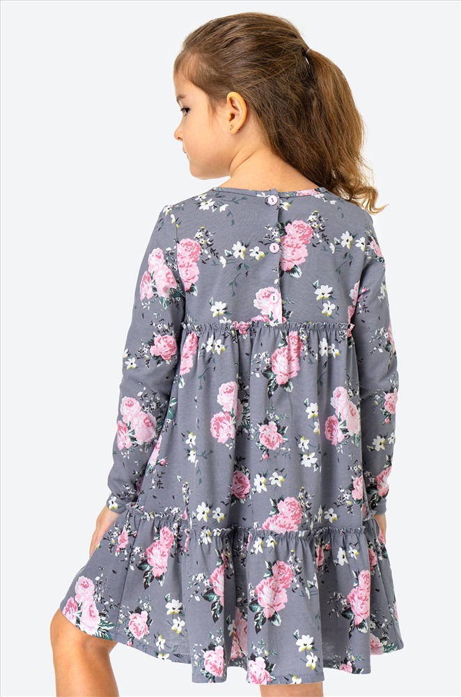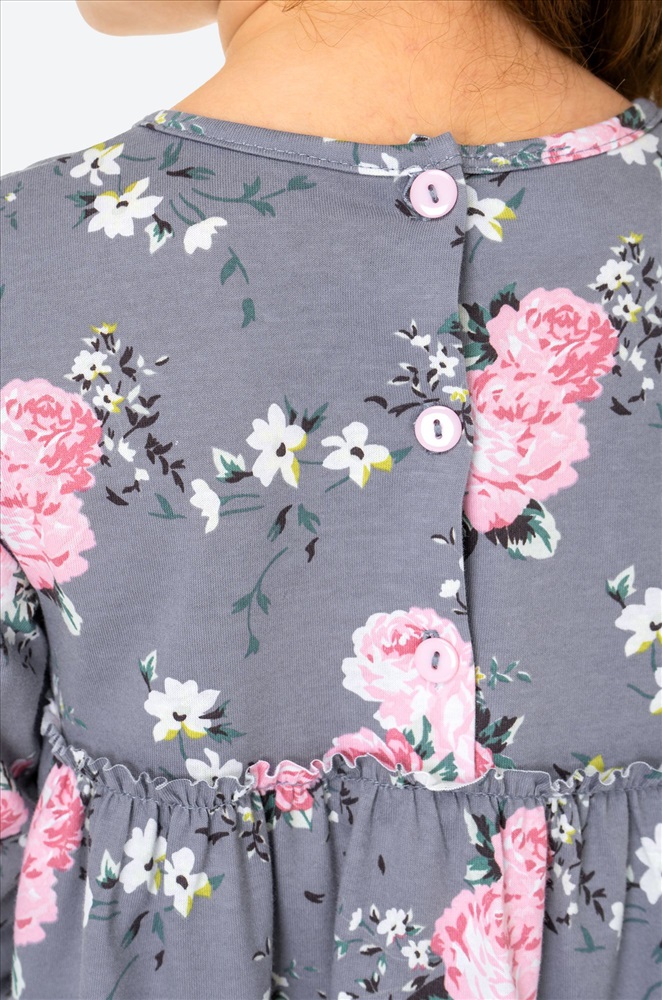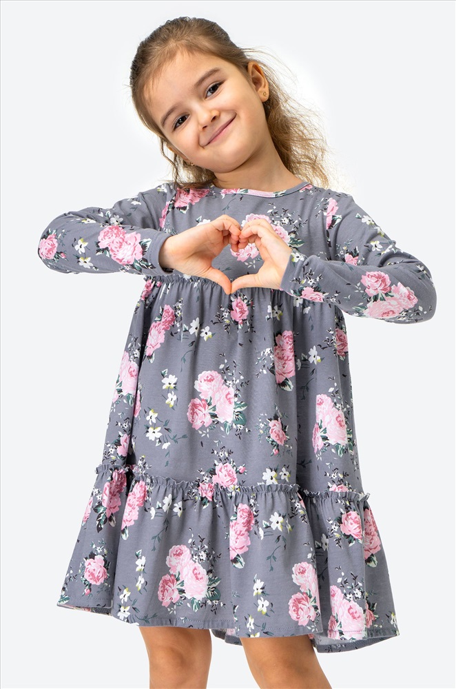 Воздушное платье для настоящих принцесс! Детское платье для девочки выполнено из натурального 100% хлопка. Свободный крой, длинный рукав, удобная застежка на пуговицы – каждая деталь создана для комфорта ребенка. Благодаря милому цветочному принту и воздушным сборкам на юбке платьице для детей поможет создать кокетливый образ.