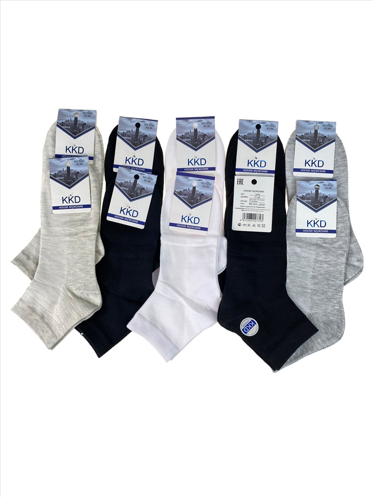 Классические летние мужские носки с анатомической резинкой из натурального хлопка, средней плотности. Не вытягиваются и не садятся после стирки. Легкие и дышащие не жмут и не перетягивают ногу, что дает возможность носить их каждый день. В составе: 80% хлопок, 15% эластан, 5% полиамид. Размер 41-46. В упаковке 10 пар.