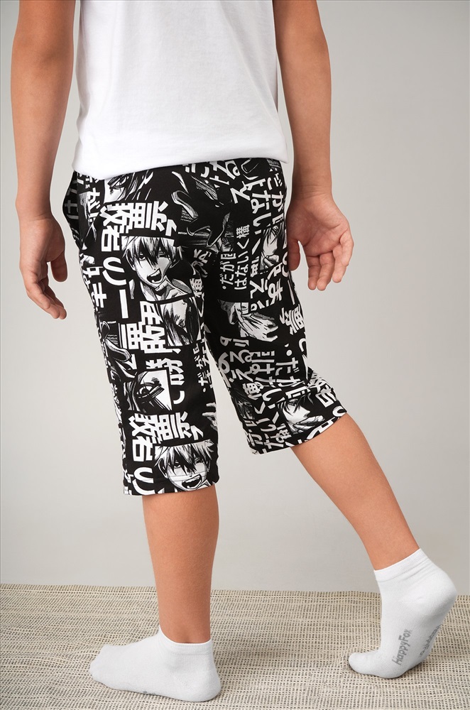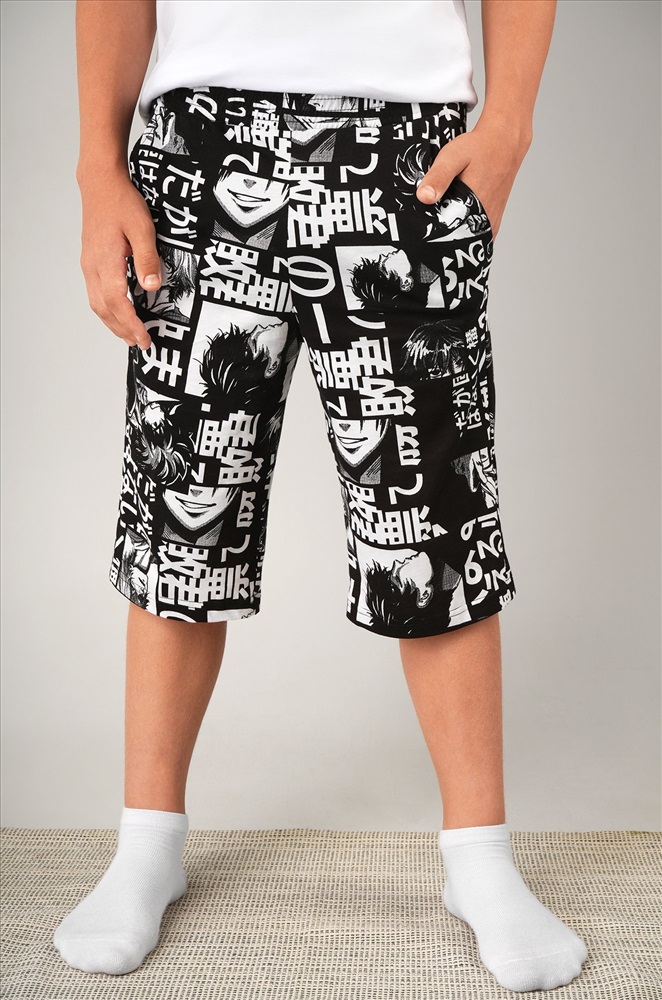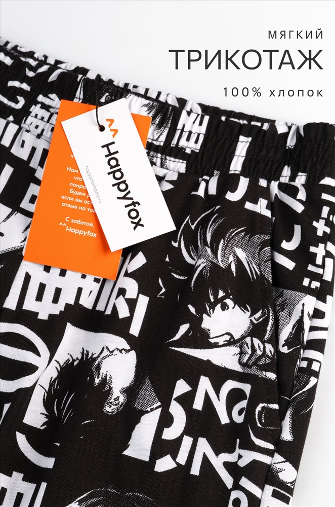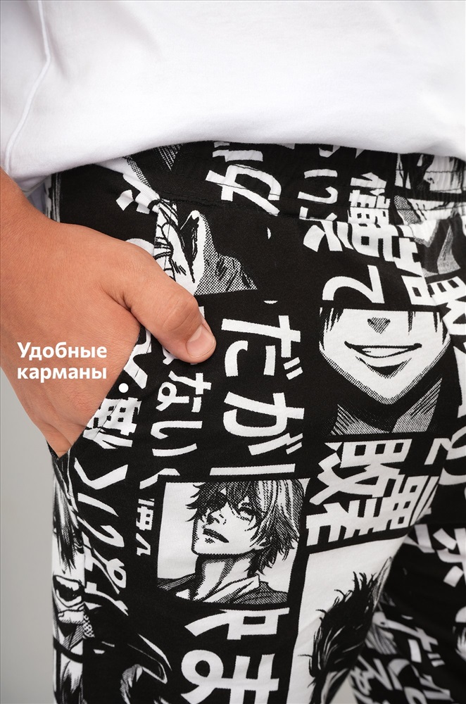 Преимущества: — 100% натуральный хлопок — мягкость и воздухопроницаемость; — свободный крой — комфорт в движении; — эластичный пояс и карманы — удобно и практично; — уникальный принт в стиле аниме добавляет динамики.Трикотажные шорты идеальны на каждый день. Удлиненные хлопковые бриджи — отличный выбор для дома. Рост модели 151 см, параметры: объем груди 66, объем талии 67, объем бедер 77 см. На нем размер 152.