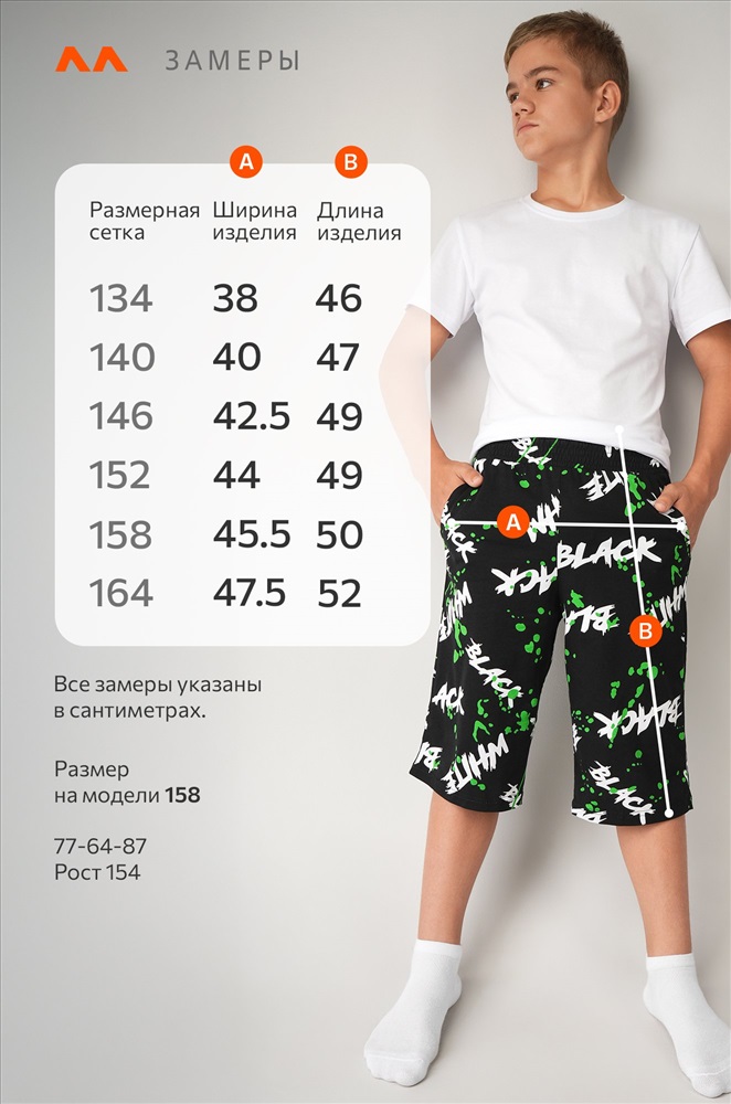 Размер 140: длина внешн.шва:47 см; длина внутр.шва:24 см; ширина по бедрам:40 см. Размер 146: длина внешн.шва:49 см; длина внутр.шва:26.5 см; ширина по бедрам:42,5 см. Размер 152: длина внешн.шва:49 см; длина внутр.шва:28 см; ширина по бедрам:44 см. Размер 158: длина внешн.шва:50 см; длина внутр.шва:29,5 см; ширина по бедрам:45,5 см. Размер 164: длина внешн.шва:52 см; длина внутр.шва:31 см; ширина по бедрам:47,5 см. *замеры выборочные, могут незначительно отличаться. Комментарии к товару