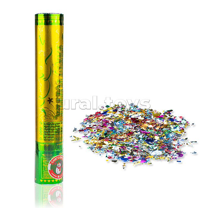Хлопушка поможет создать весёлую атмосферу на любом празднике, подарит яркие эмоции и позитивное настроение. • Эффект: хлопок и выброс фольгированного конфетти. • Не является пиротехникой: выстрел происходит за счет сжатого воздуха. • Инструкция указана на упаковке. • Высота хлопушки: 30 см. • Изготовлено из картона, фольги и полимерных материалов. • Соответствует требованиям безопасности продукции. • Не предназначено для детей.