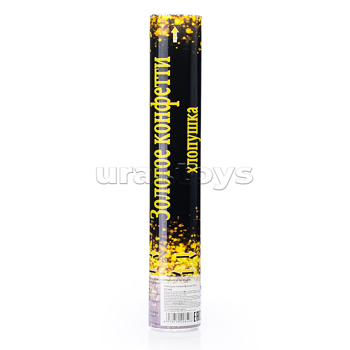 Код: 457707 Штрихкод: 6978459028408 Страна производитель: Китай Размеры упаковки: 30 x 5 x 5 см Количество в коробке: 100 • Эффект: хлопок и выброс фольгированного конфетти. • Не является пиротехникой: выстрел происходит за счет сжатого воздуха. • Инструкция указана на упаковке. • Размеры хлопушки: 5х5х30 см. • Изготовлено из картона, фольги и полимерных материалов. • Соответствует требованиям безопасности продукции. Комментарии к товару