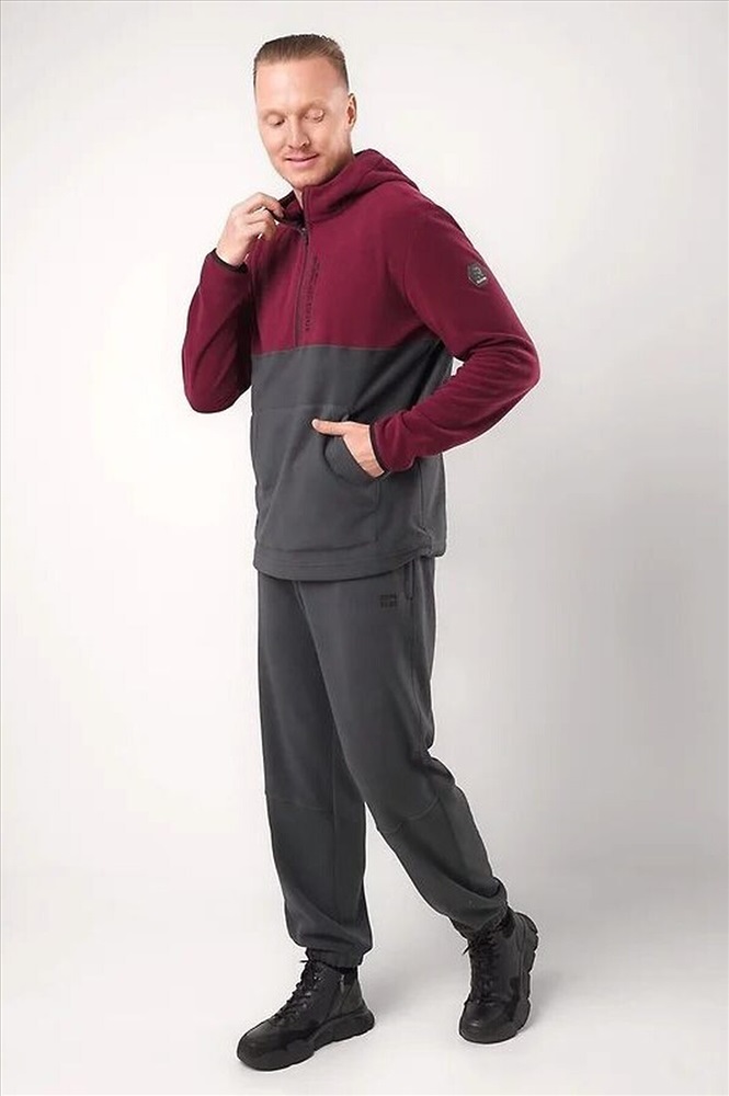 Мужская толстовка выполнена из флиса. Модель с укороченной застежкой на молнию и вместительным карманом, так же дополнена имиджевой вышивкой. Прекрасно подойдёт для холодного времени года.