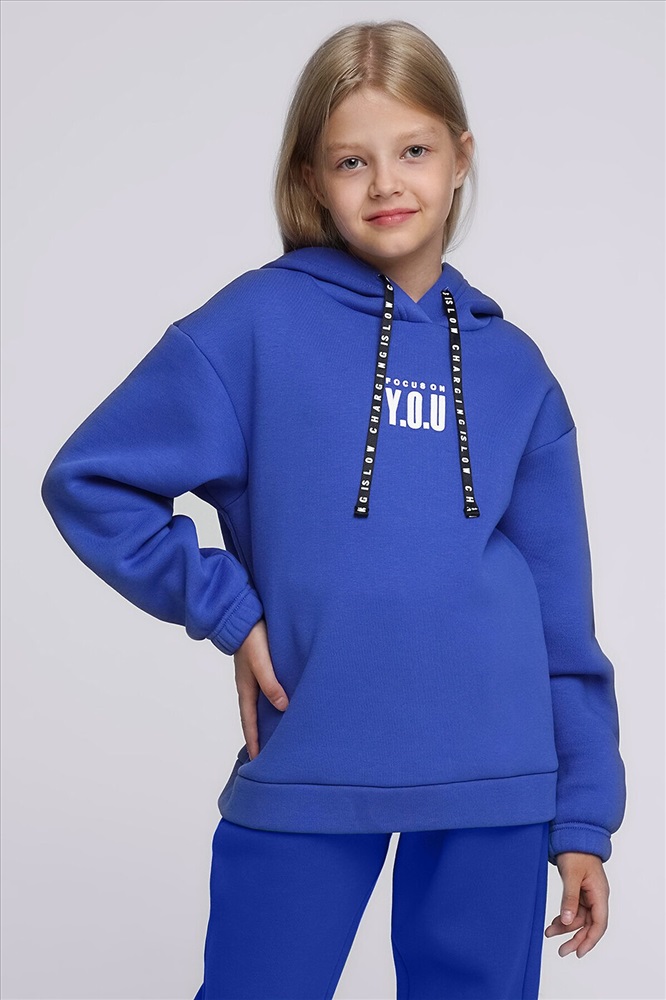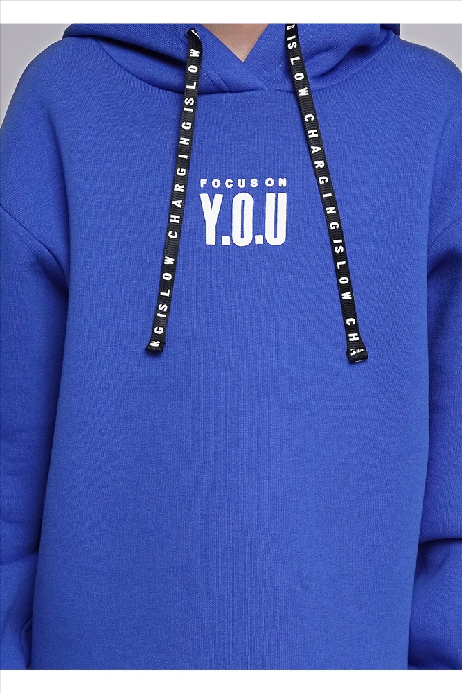Базовое худи из теплого футера с начесом. Удобный капюшон с контрастной тесьмой, немного заниженная линия плеча, по низу рукавов манжеты на резинке. Спереди минималистичный объемный принт. Универсальная модель в трендовом оттенке!