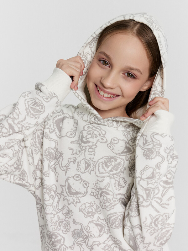 Худи из нежного футера с теплым подчесом. Силуэт прямой и свободный, рукава длинные на манжетах, линия плеча слегка спущена. Уюта добавляет просторный мягкий капюшон на подкладке. Отличный вариант с очень интересным дизайном!