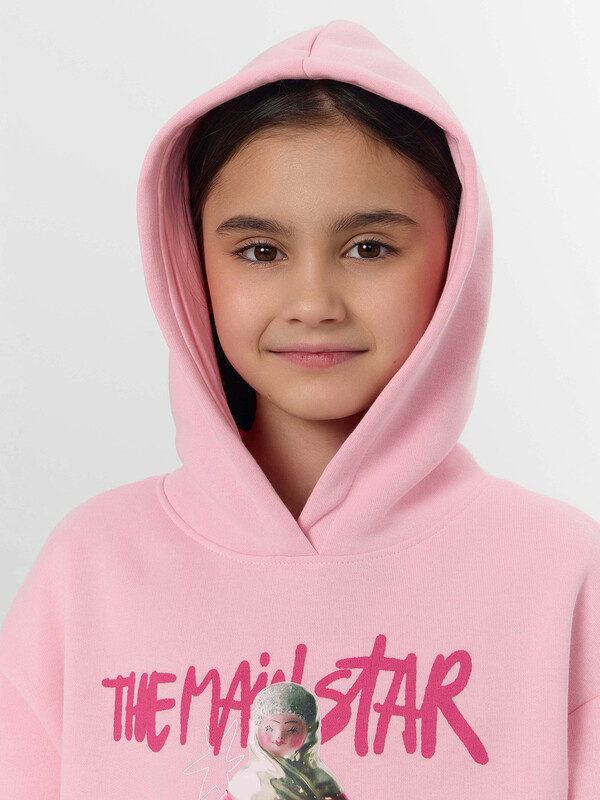 Худи для девочек сочетает стильный дизайн с практичной функциональностью. Модель выполнена из мягкого футера с начесом, который сохраняет тепло и обеспечивает комфорт в прохладную погоду.