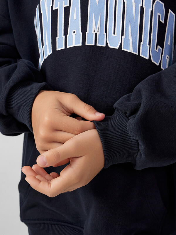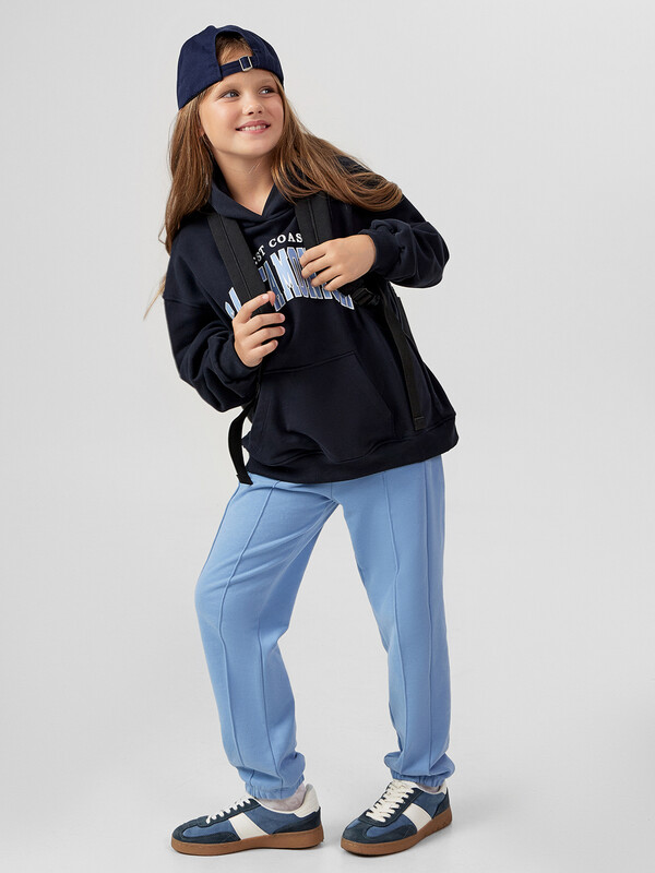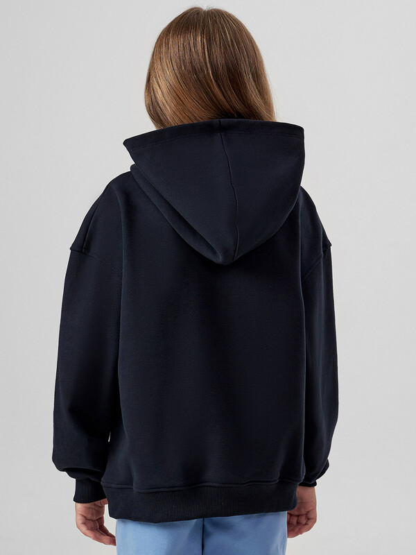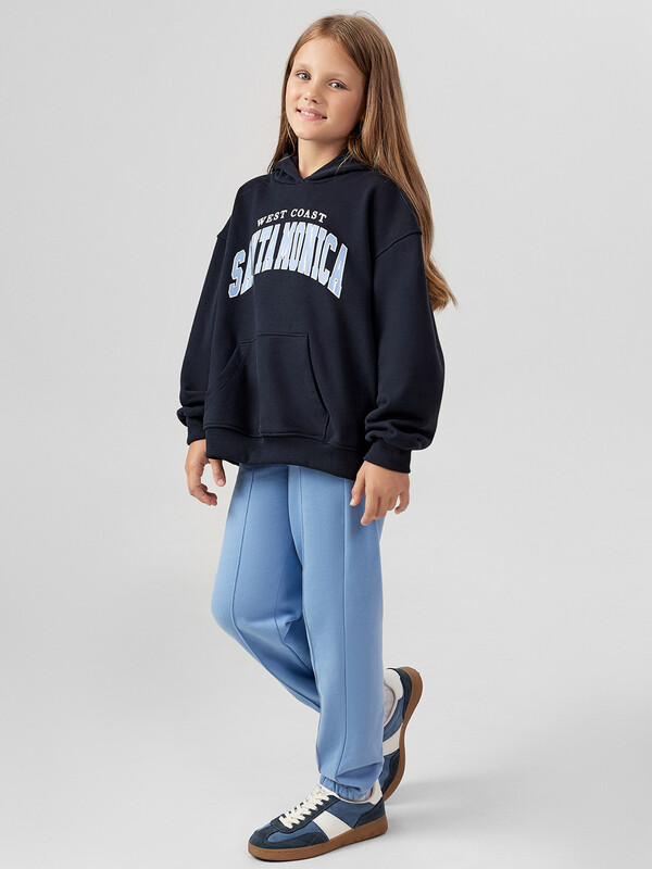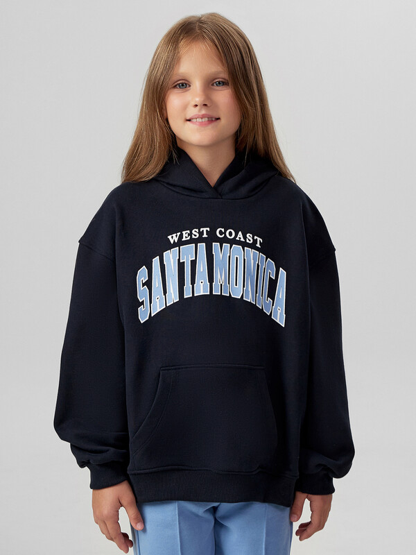 Производитель: Mark Formelle Худи для девочек, свободного силуэта (оверсайз), с капюшоном. Горловина округлой формы. Капюшон со средним швом, на подкладке из основного полотна. Шов втачивания капюшона закрыт хб тесьмой. Плечо спущено, рукав втачной длинный. По низу рукава отрезная манжета из рибаны. Пояс отрезной из рибаны, отстрочен. По переду карман кенгуру.