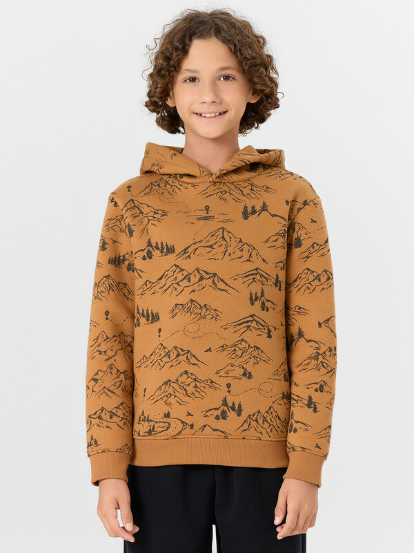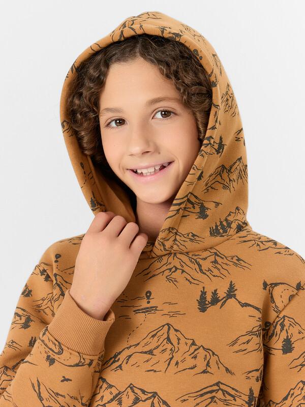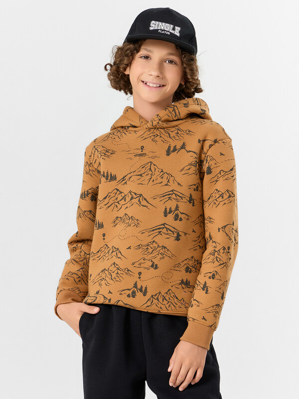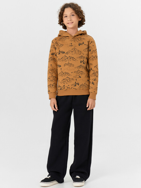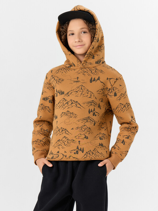 Стильное худи из футера с подчесом – нежного и долговечного трикотажного полотна. Силуэт прямой и свободный. Уютный капюшон, длинные рукава на манжетах, немного спущенная линия плеча – максимально комфортная модель!