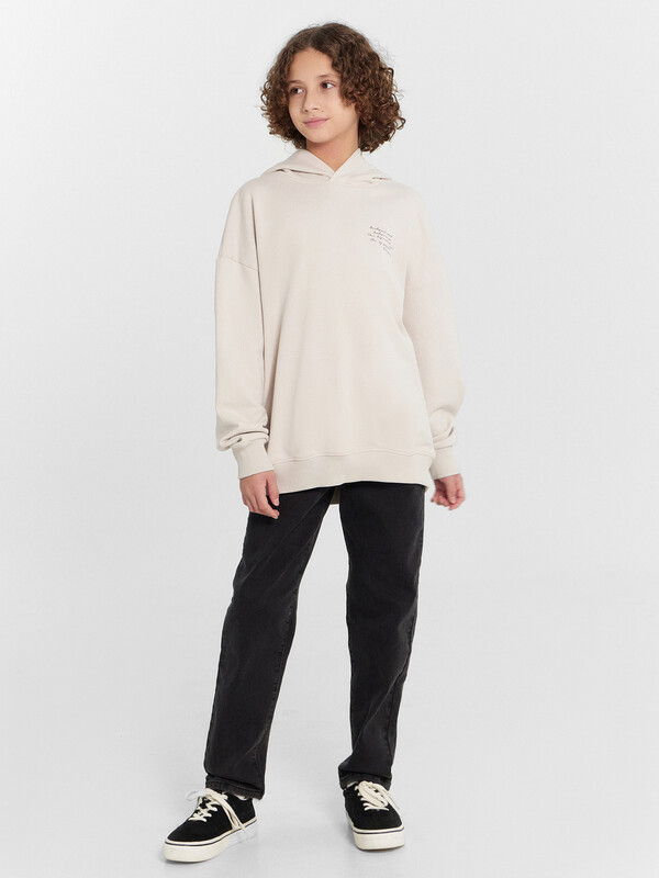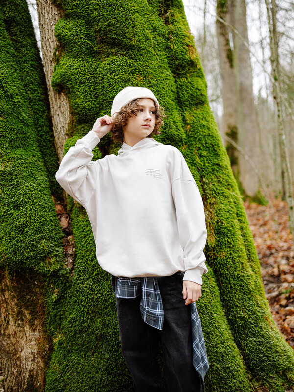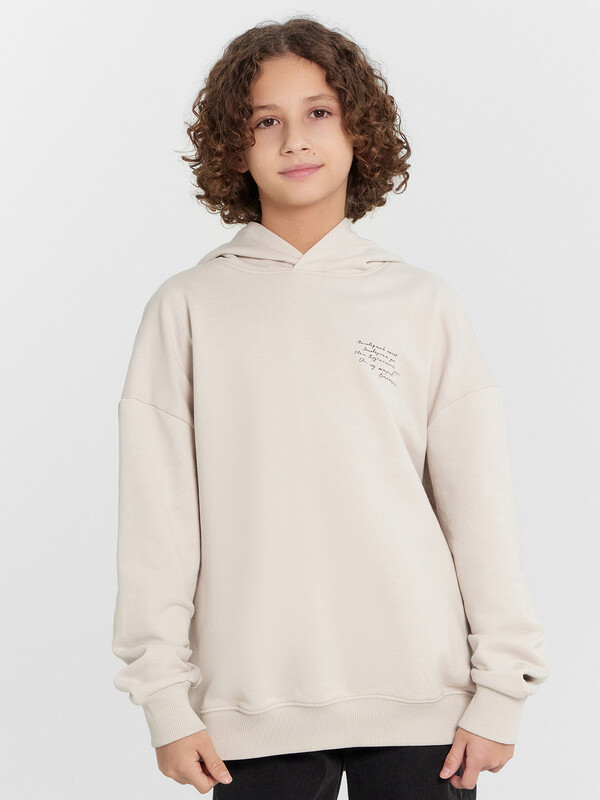 Худи для мальчиков из футера без подчеса - стильное и удобное дополнение к любому гардеробу. Модель свободного силуэта с капюшоном обеспечивает комфорт и свободу движений. Спущенная линия плеча и длинные рукава с эластичными манжетами добавляют изделию современный и расслабленный вид. Худи имеет накладной карман-кенгуру спереди, что позволяет удобно хранить мелкие предметы или согреть руки. Изделие выполнено из футера без подчеса - мягкого и приятного на ощупь материала, который обеспечивает отличные теплоизоляционные свойства. Футер сохраняет тепло и комфорт в прохладную погоду, при этом обладает хорошей воздухопроницаемостью, позволяя коже дышать и предотвращая перегрев. Этот материал также отличается прочностью и долговечностью, что делает его идеальным для повседневной носки. Такое худи станет отличным выбором для создания стильных и удобных образов для вашего ребенка, обеспечивая комфорт в любое время года.