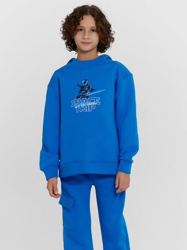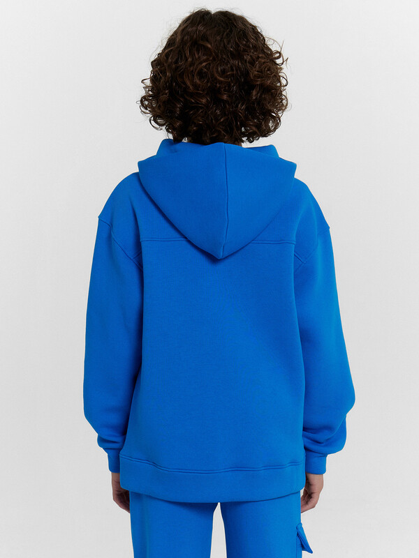 Анорак прямого силуэта с капюшоном. Капюшон на подкладке из основного полотна. Рукава длинные, втачные. Линия плеча спущена. Боковые и плечевые швы перенесены вперед. По спинке горизонтальное членение. По низу изделия и рукавов притачены пояс и манжеты из трикотажного полотна рибаны.