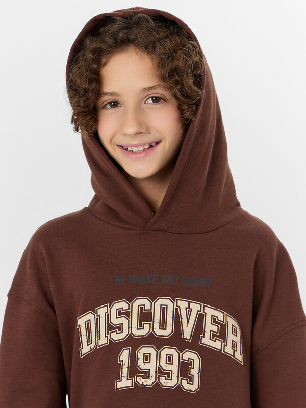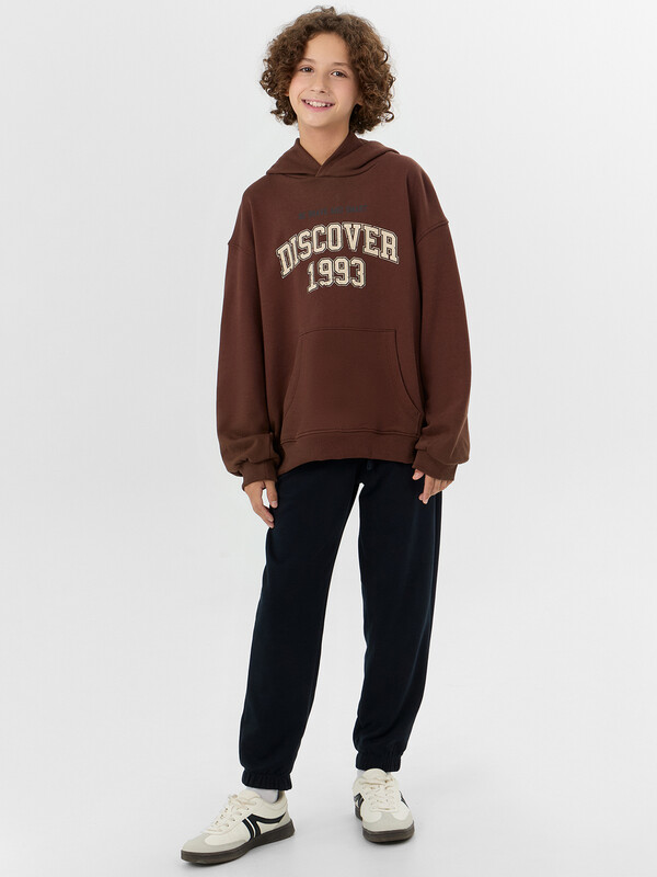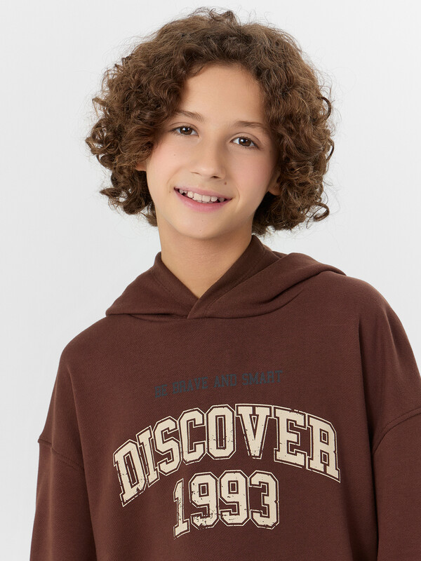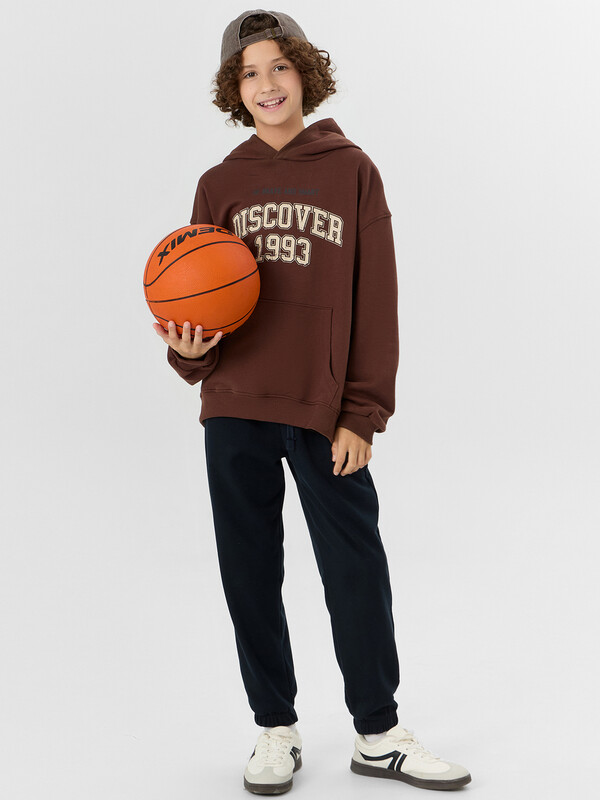 Худи оверсайз для мальчиков с надписью создано для активного образа жизни. Модель из хлопка отличается особой мягкостью и способностью пропускать воздух, что важно для подвижных детей.