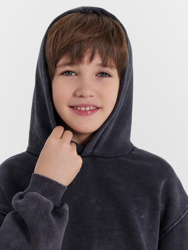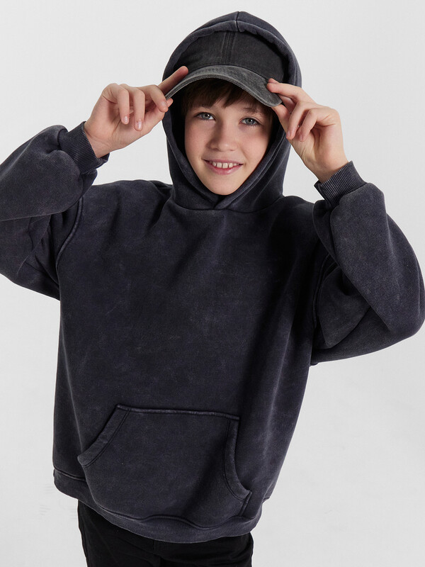 Это эффектное худи для мальчиков идеально подходит для создания стильных повседневных образов. Модель имеет свободный крой с капюшоном на кулиске, длинные рукава с эластичными манжетами и спущенную линию плеча, что добавляет ей современный и расслабленный вид. Спереди предусмотрен накладной карман кенгуру, который добавляет практичности и удобства. Изделие выполнено из футера с подчесом, что обеспечивает комфорт и тепло в холодные дни. Плотный трикотажный материал обладает отличными теплоизоляционными свойствами и долговечностью, что делает его идеальным выбором для повседневной носки. Это худи станет отличным дополнением вашего гардероба, обеспечивая уют и стиль каждый день.