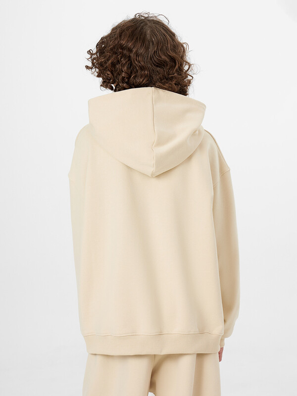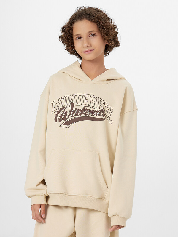 Свободный крой со спущенной линией плеч и длинными рукавами обеспечивает полную свободу движений. Капюшон со средним швом имеет подкладку из основного материала, а место его соединения с основной частью аккуратно обработано хлопковой тесьмой. Практичный карман-кенгуру на передней части и манжеты с поясом из рибаны добавляют удобства в использовании. Это худи подойдет для прогулок, занятий спортом и неформального общения. Оно сочетается с джинсами, спортивными брюками и шортами. Модель разработана с учетом потребностей активных детей – прочная, дышащая и при этом сохраняющая аккуратный внешний вид даже при интенсивной эксплуатации. 100% хлопок Комментарии к товару