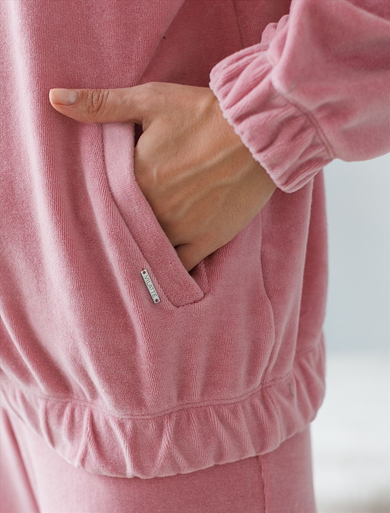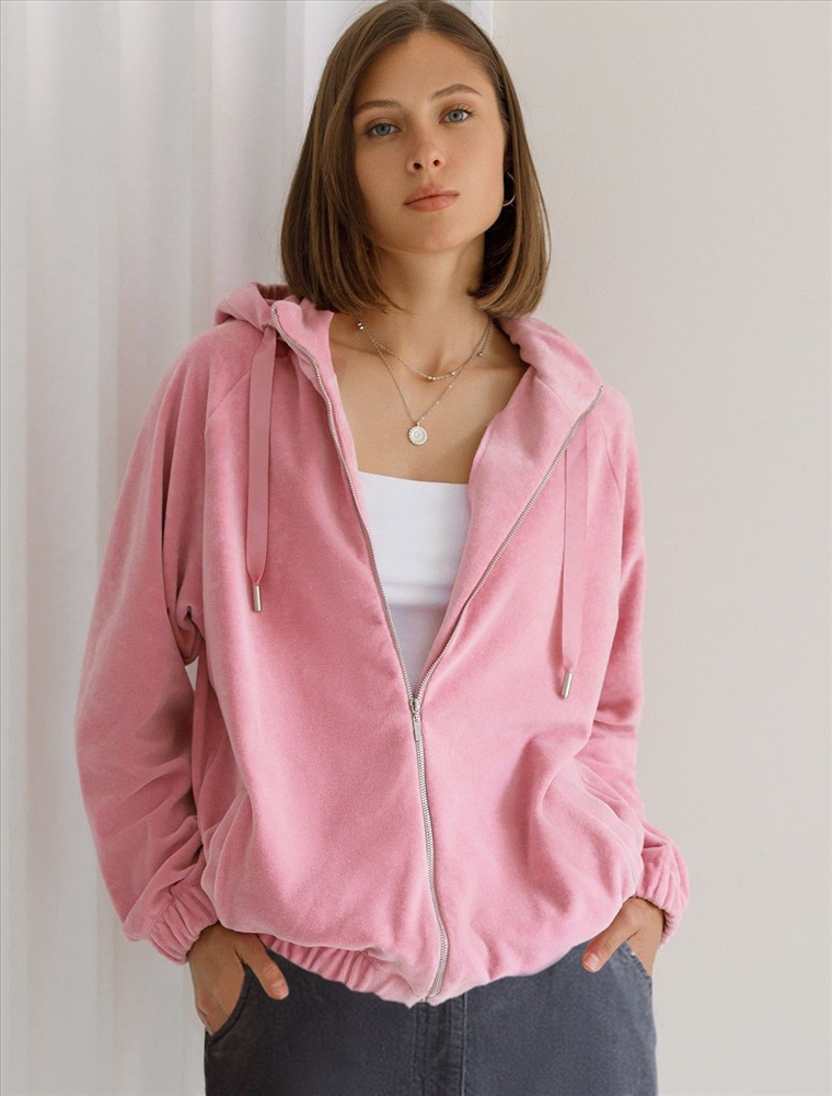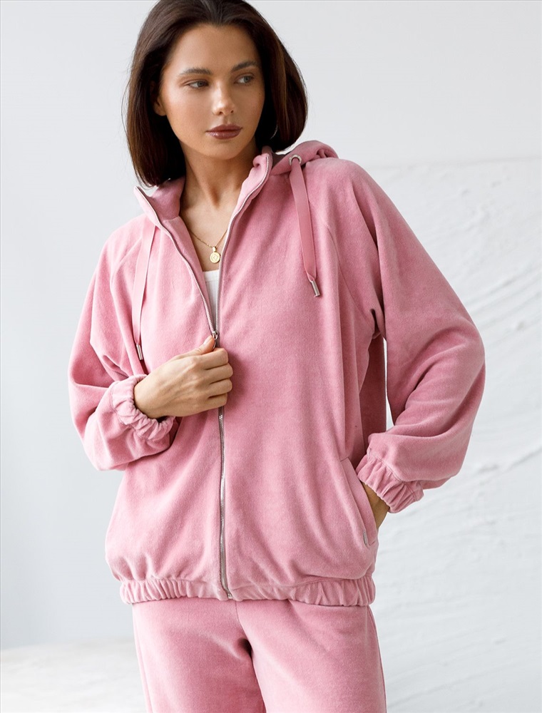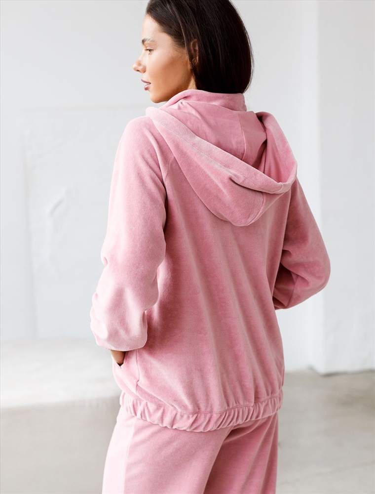Состав: 80%Хлопок 20%ПЭ; Плотность: 240 Г/м2; Параметры модели на первом фото: Рост 170, бюст 83, талия 64, бедра 88 Худи на двухсторонней молнии выполнено из бархатистого велюра. Модель дополнена резинкой по низу и боковыми карманами. Легкий и мягкий материал с матовой фактурой придает изделию нежность и комфорт. Хорошо держит тепло и форму – идеальное решение для домашнего отдыха. Сочетается в костюме с брюками D44.117